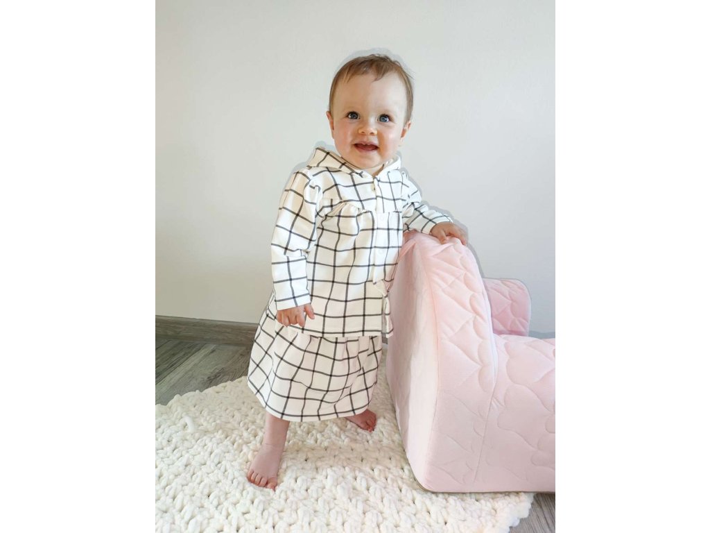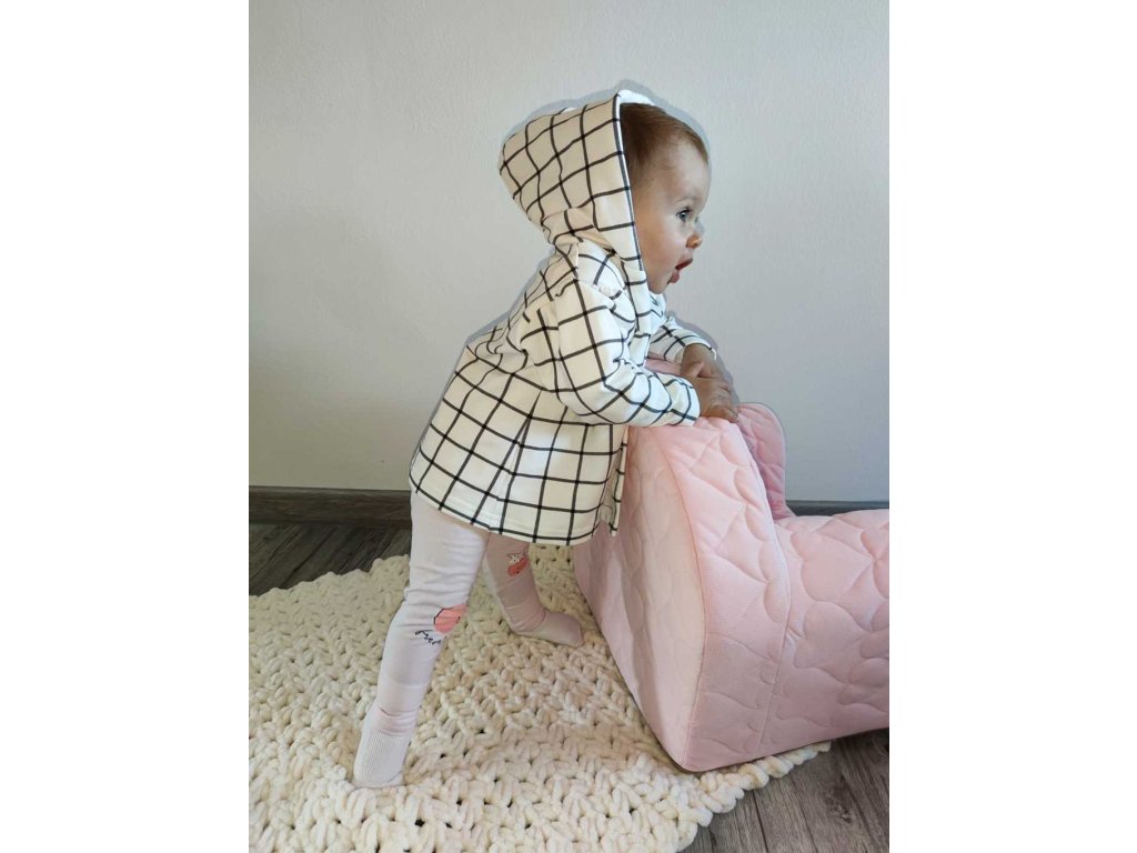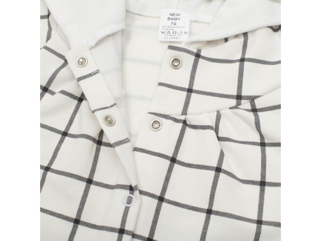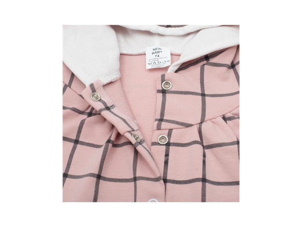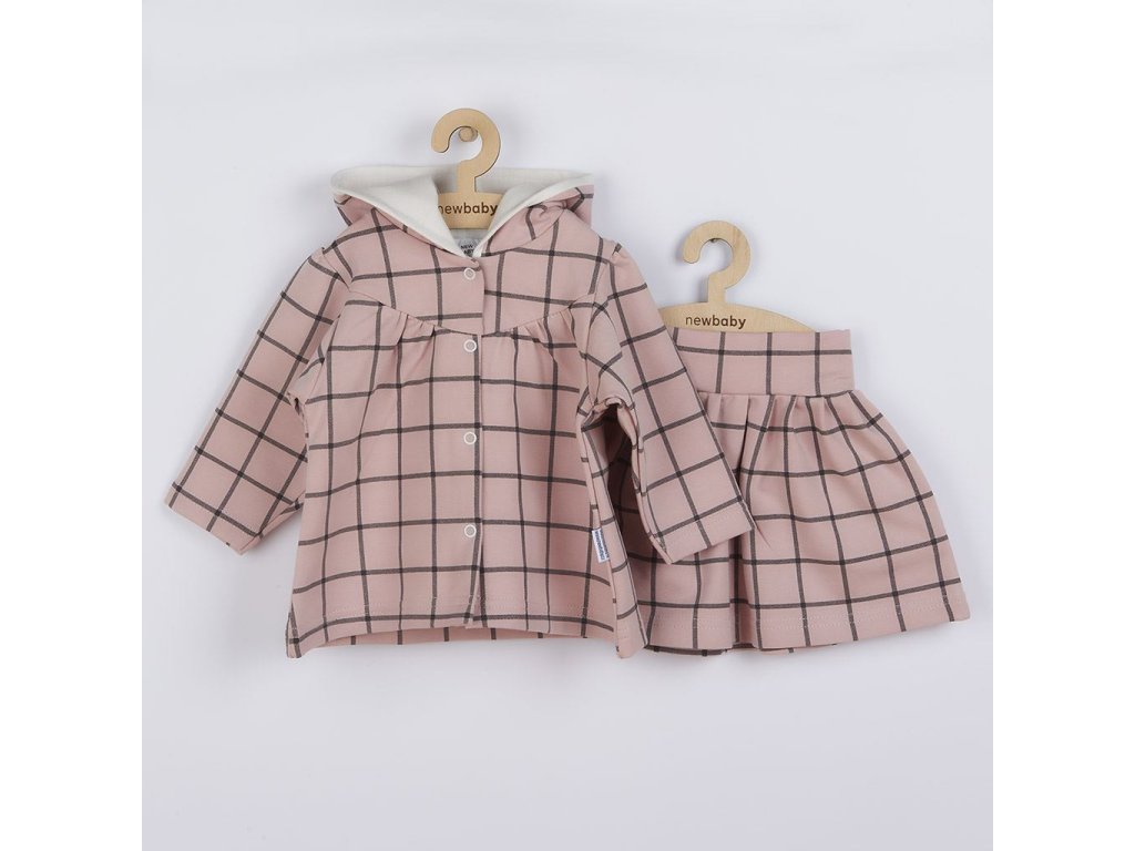 2-dielny komplet pre dievčatko New Baby Cool Girls. Komplet sa skladá z mikinky a sukienky. Mikinku Áčkového strihu zdobí praktická kapucňa podšitá bavlnenou podšívkou a stále moderný kockovaný vzor. Zapínanie na cvočky po celej dĺžke. Kolový strih sukienky zdobí širší pás s gumičkou. Krásny komplet do šatníka malých parádníc. Materiál: 95% bavlna, 5% elastan.