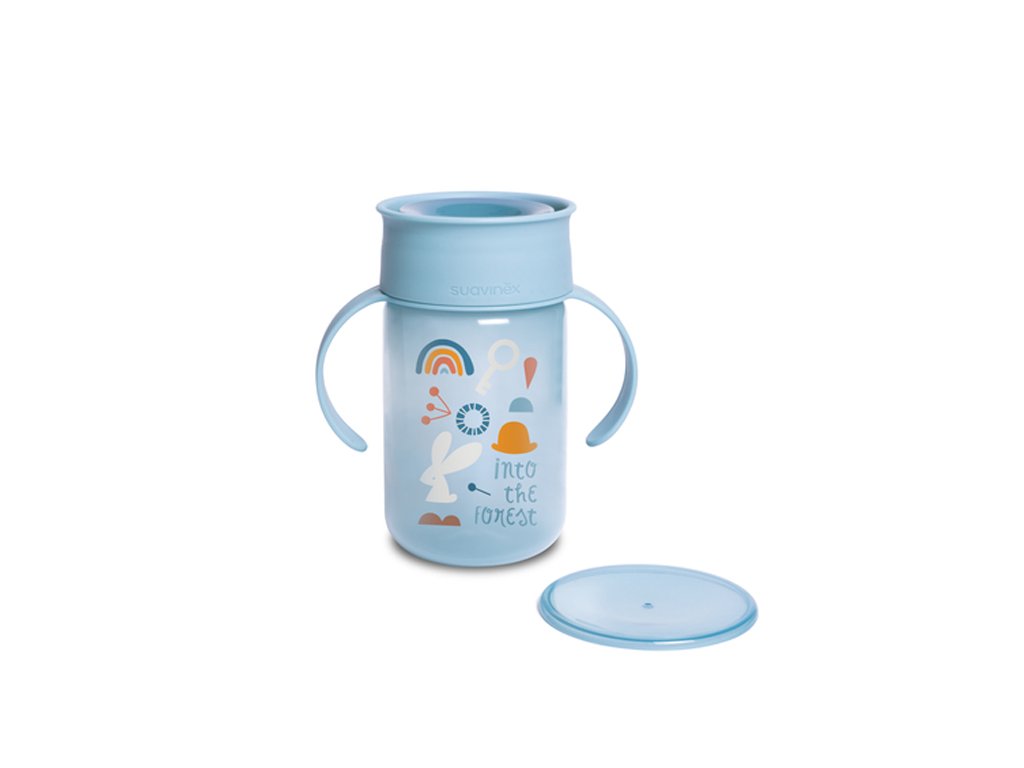 Dôležitým krokom vo vývoji detí je naučiť sa piť bez Vašej pomoci. 360 ° hrnček radu FOREST od značky Suavinex je vhodný pre učenie samostatného pitia pre batoľatá a skvelý pre prechod ku klasickému hrnčeku. S týmto učiacim hrnčekom si vaše dieťa zlepšia svoje schopnosti, pretože hrnček umožňuje piť bez rozliatiu tekutiny z akejkoľvek časti horného okraja vďaka ventilu. Nepriepustné veko zabráni vyliatiu tekutiny pri prevrhnutí hrnčeka a vyteká iba pri kontakte s detskými perami. Hrnček má držadlá vhodná pre drobné detské ruky, ktoré umožnia jej ľahké uchopenie.