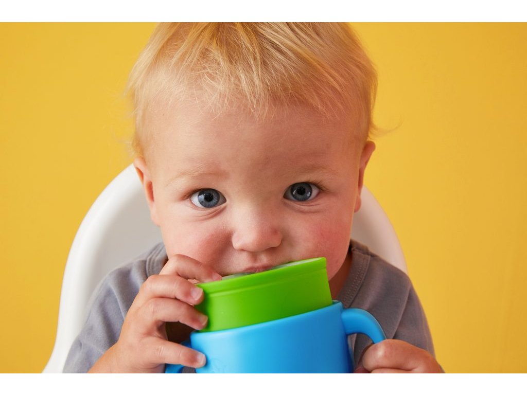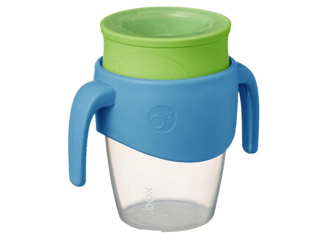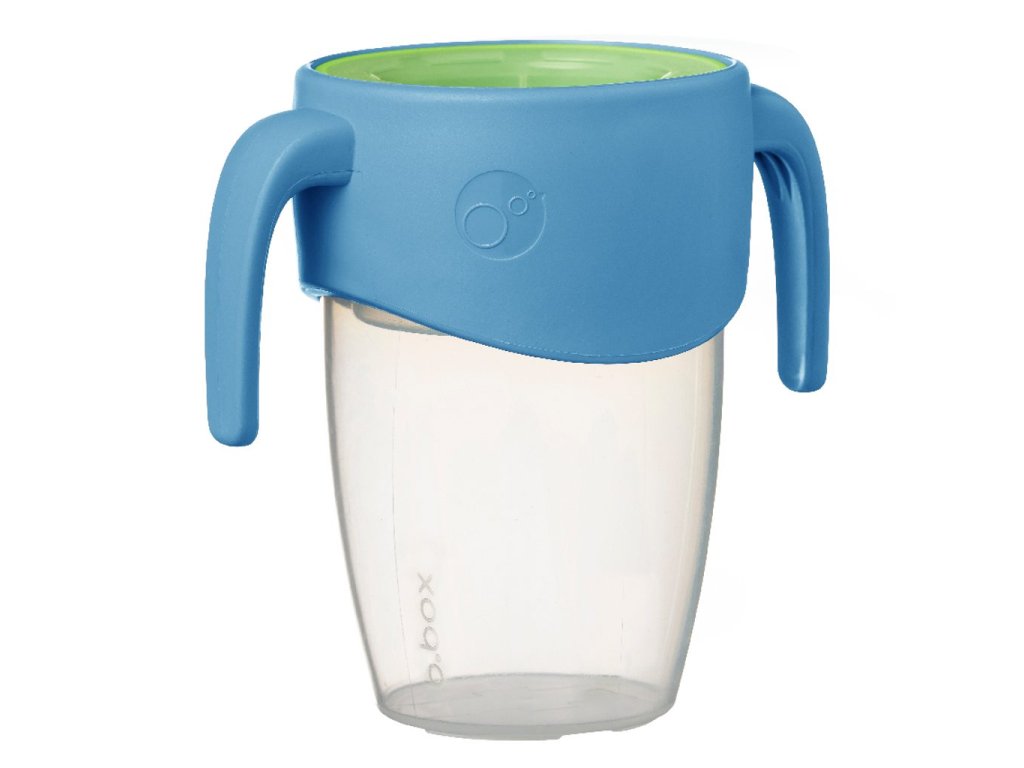 360° netekoucí učící hrneček od značky b.box dovoluje dětem nápoj z hrnečku jen usrkávat, ale hlavně učit se pít díky unikátnímu měkkému silikonovému okraji po celém okraji hrnečku.