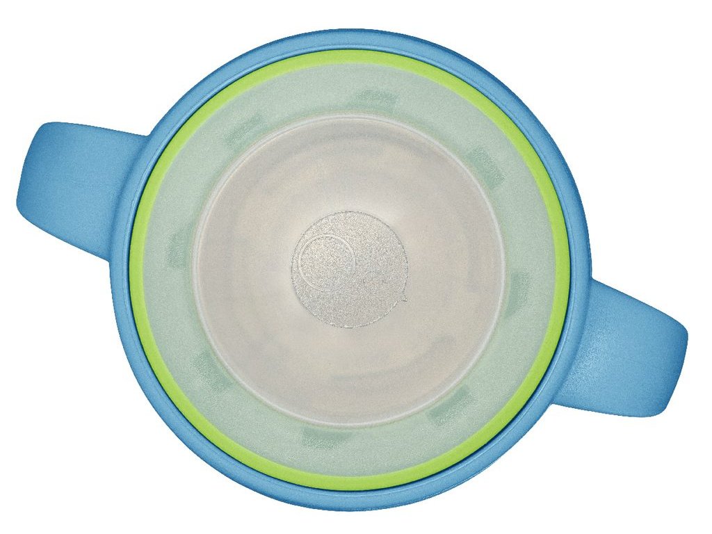 Měkký silikonový okraj umožňuje řízení průtoku tekutiny z hrnečku přiložením rtů k hrnečku a zabraňuje zbytečnému rozlití tekutiny. Čím pevněji dítě přitlačí rty k okraji, tím více tekutiny poteče. Silikonový okraj zároveň těsní a udržuje hrneček zavřený, když se nepoužívá. Široké rukojeti jsou snadno uchopitelné malými ručičkami a zároveň plní funkci uzavíratelného "víčka"