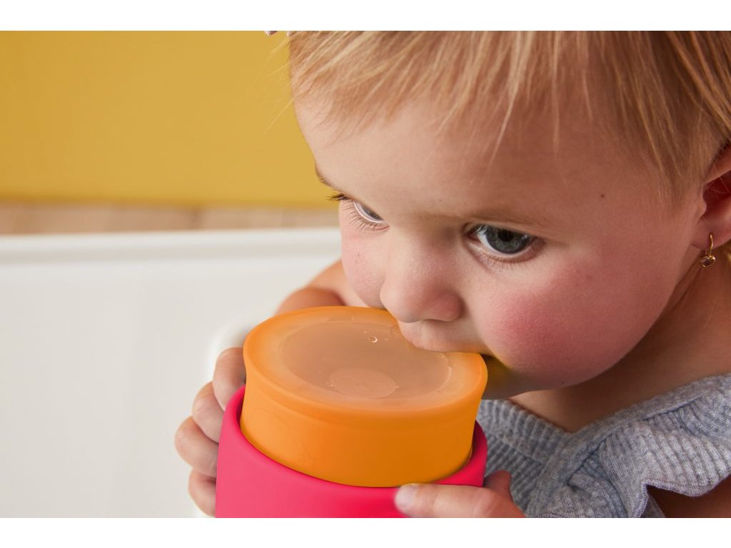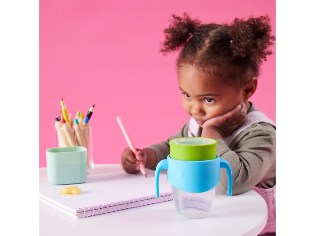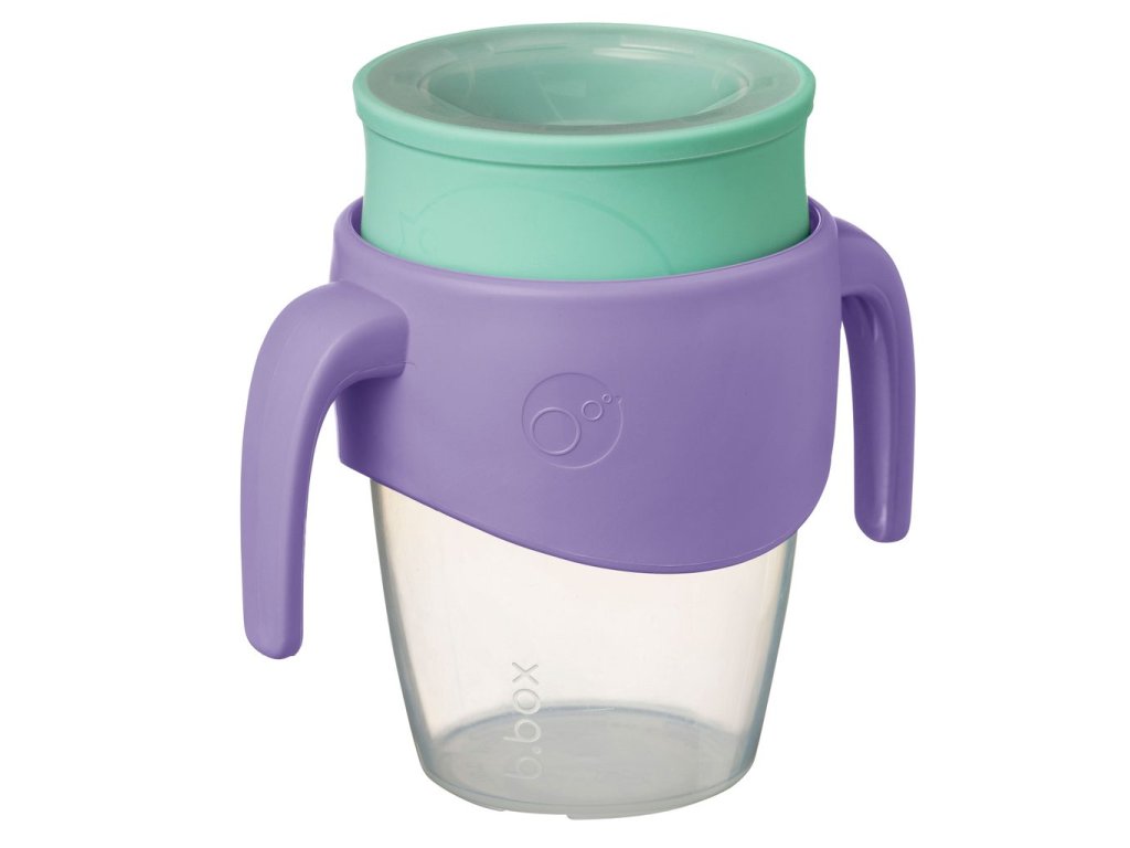 360° netekoucí učící hrneček od značky b.box dovoluje dětem nápoj z hrnečku jen usrkávat, ale hlavně učit se pít díky unikátnímu měkkému silikonovému okraji po celém okraji hrnečku.