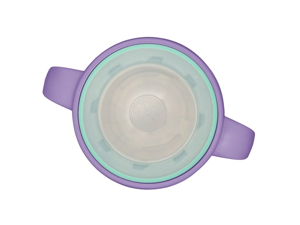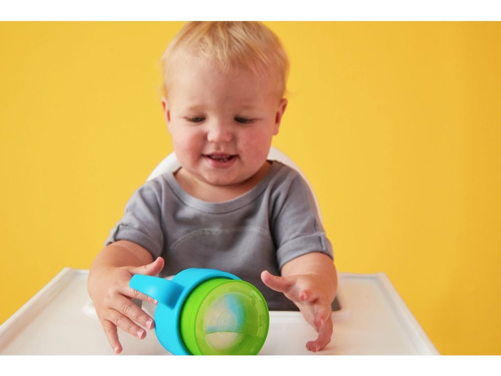 Měkký silikonový okraj umožňuje řízení průtoku tekutiny z hrnečku přiložením rtů k hrnečku a zabraňuje zbytečnému rozlití tekutiny. Čím pevněji dítě přitlačí rty k okraji, tím více tekutiny poteče. Silikonový okraj zároveň těsní a udržuje hrneček zavřený, když se nepoužívá. Široké rukojeti jsou snadno uchopitelné malými ručičkami a zároveň plní funkci uzavíratelného "víčka"