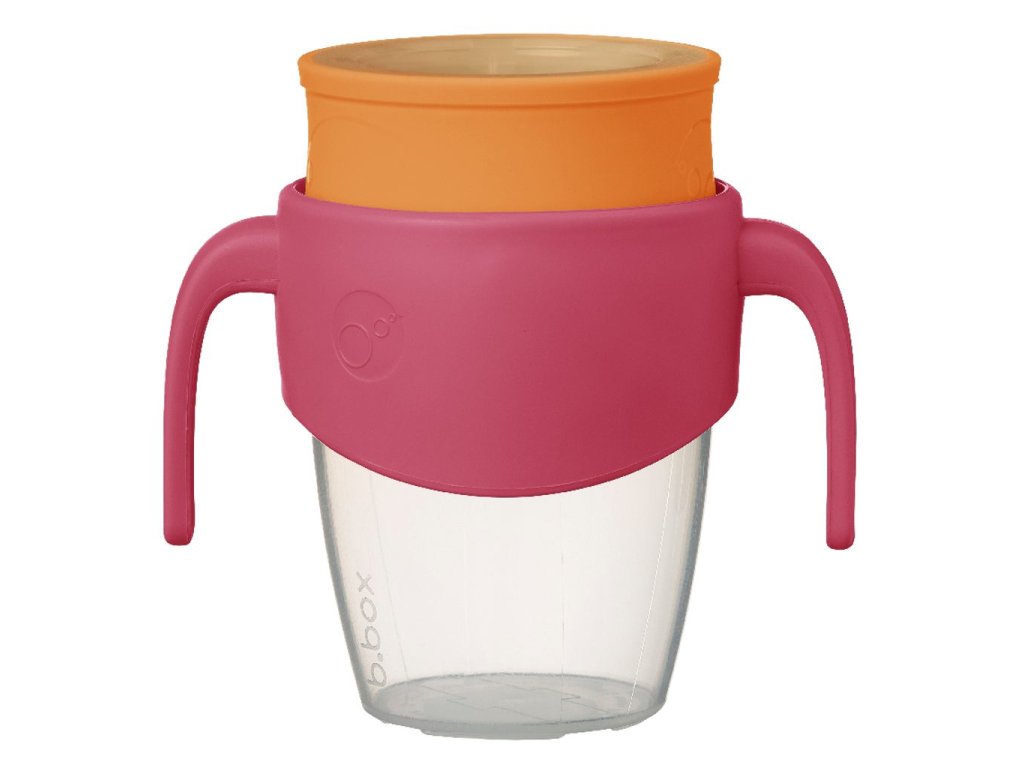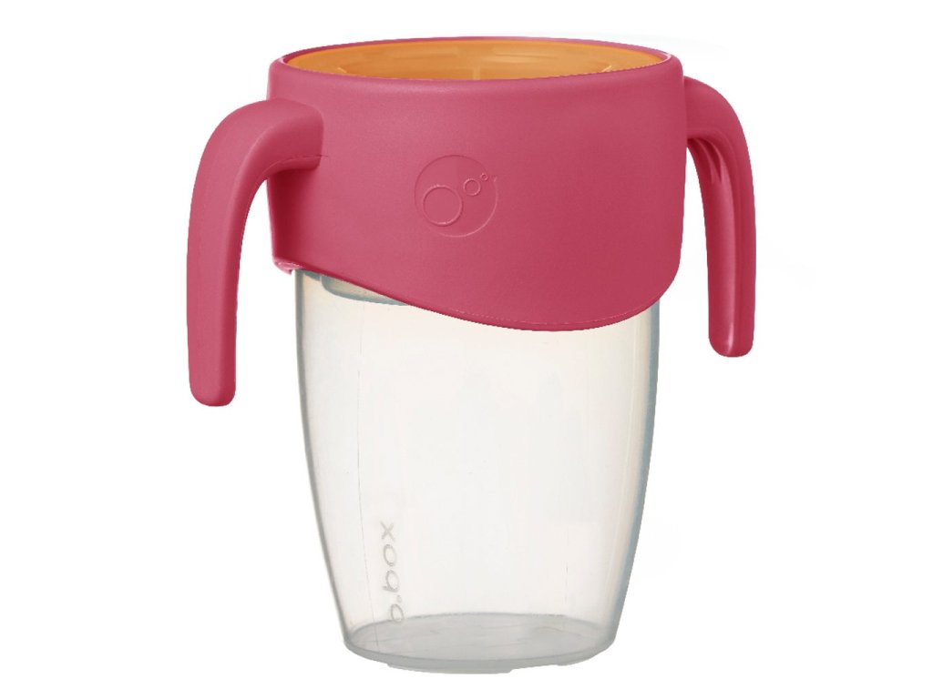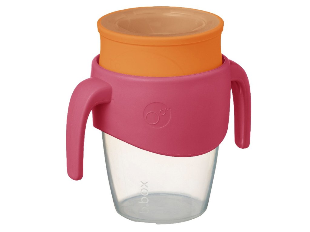 360° netekoucí učící hrneček od značky b.box dovoluje dětem nápoj z hrnečku jen usrkávat, ale hlavně učit se pít díky unikátnímu měkkému silikonovému okraji po celém okraji hrnečku.