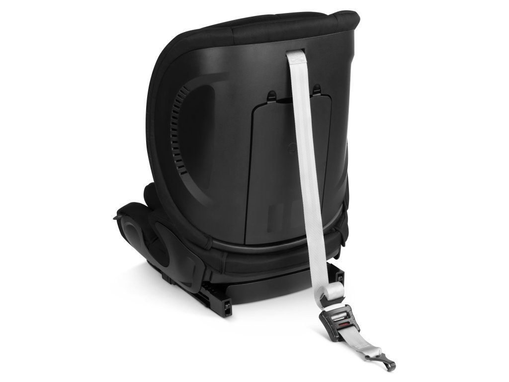 Uchycení horního popruhu – popruh natažený přes opěradlo zadního sedadla a ukotvený v držáku – navíc poskytuje ještě větší bezpečnost. U obou upevňovacích systémů barevné displeje ukazují, zda je vše správně umístěno. Červená znamená, že je potřeba něco upravit. Zelená znamená, že je vše v pořádku.