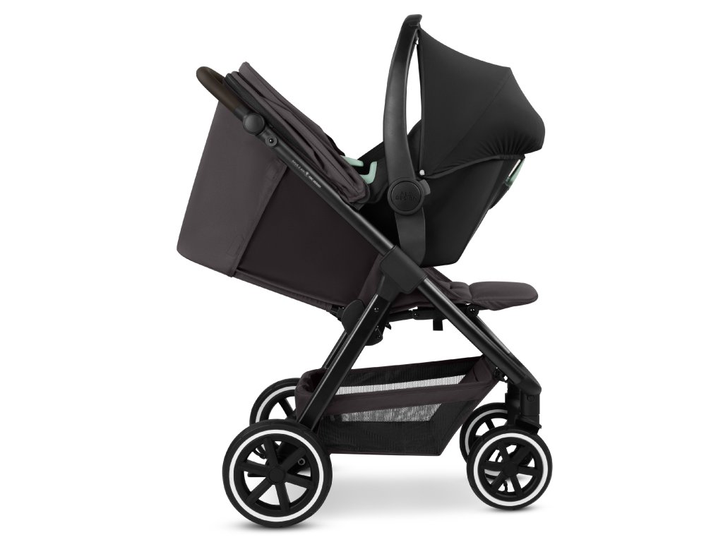 Propracovaný systém: S volitelným adaptérem na autosedačku / k dokoupení / můžete ke kočárku snadno připojit také dětskou autosedačku. Tím se z něj stane cestovní systém a můžete jej v této kombinaci používat od narození. Díky integrovanému držáku ABC Design Universal Fix lze jediným kliknutím připojit příslušenství, jako je přebalovací taška, držák na nápoje nebo světlo / příslušenství k dokoupení /.