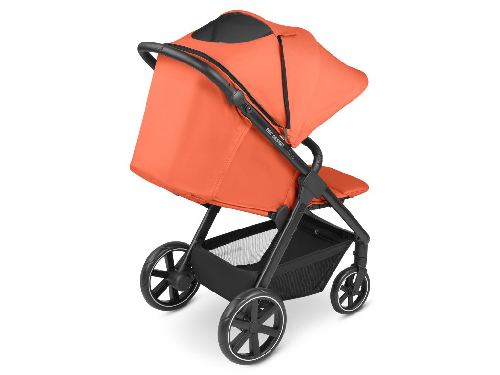 Avus nabízí spoustu komfortu také pro rodiče: parkovací brzda se nachází přímo na pravém zadním kole, díky čemuž je zadní osa nadbytečná. Její absence tak nejen šetří váhu a prostor, ale také vám poskytuje více místa na nohy při tlačení kočárku. Tuto výhodu ocení především vysocí rodiče.