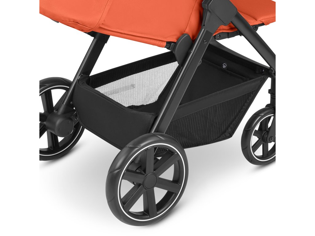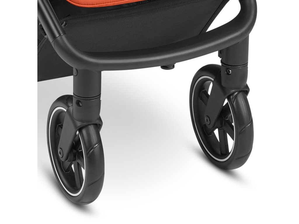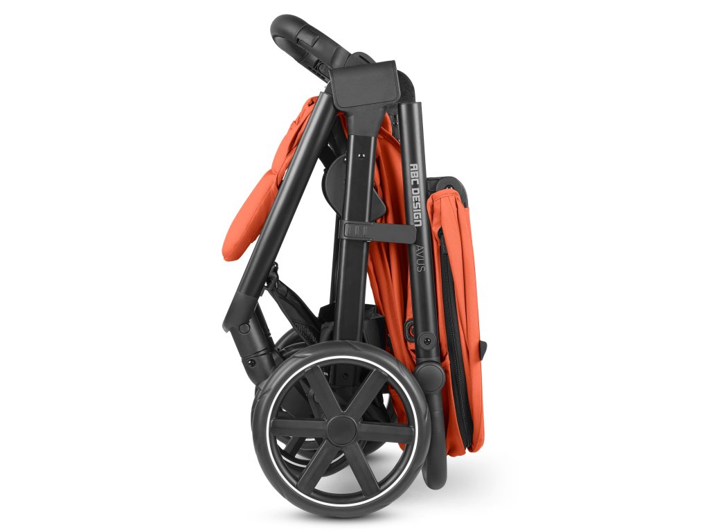 Díky velkým předním i zadním kolům si Avus vede dobře jak ve městě, tak i v terénu. V kombinaci s integrovaným systémem odpružení zajišťují kola hladkou jízdu na jakémkoliv povrchu. Pomocí skryté rukojeti v sedadle kočárku můžete Avus snadno složit jen jednou rukou a v mžiku jej tak připravíte na transport. Praktická funkce samostatného stání a transportní zámek umožňují kočárku Avus samostatně stát a dělají z něj dokonalého společníka – na výlety, do města nebo pro cestování.