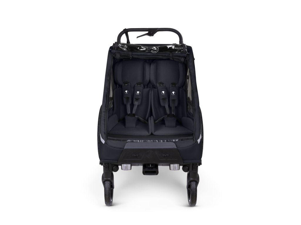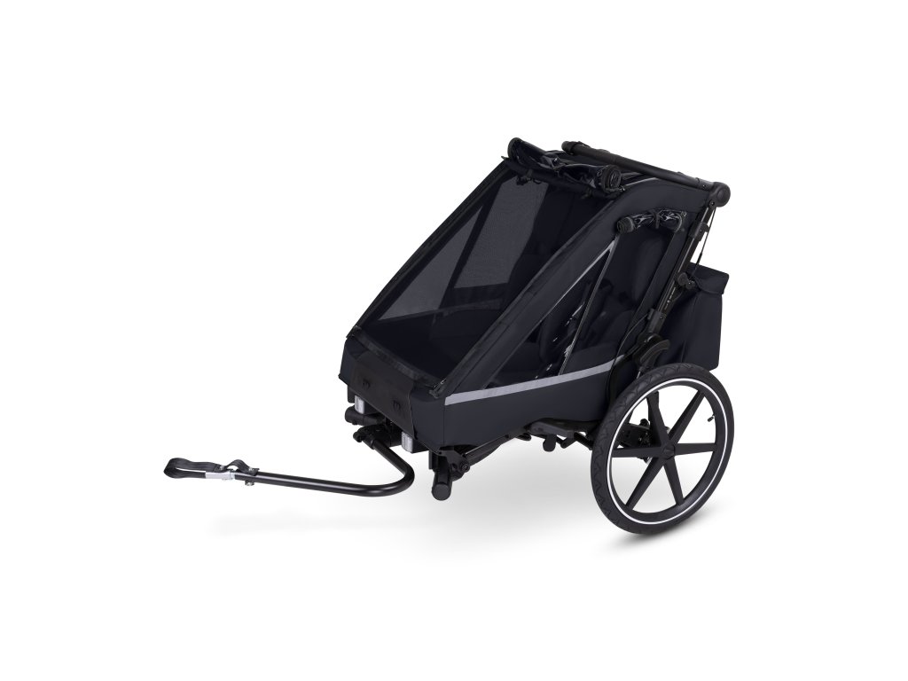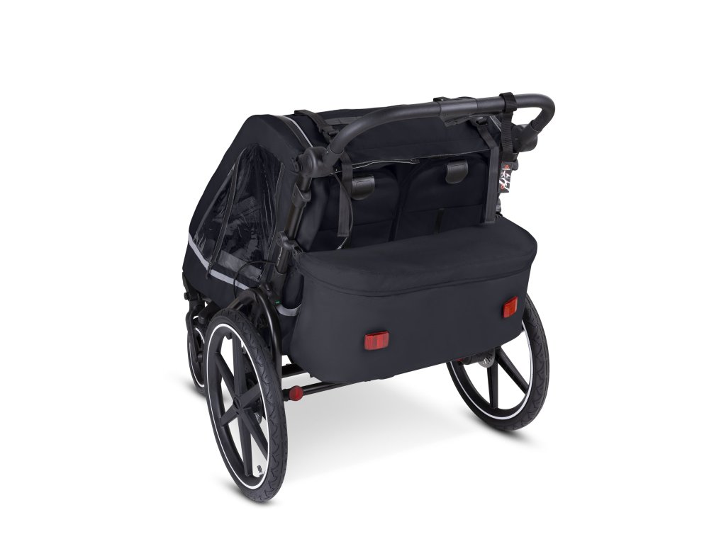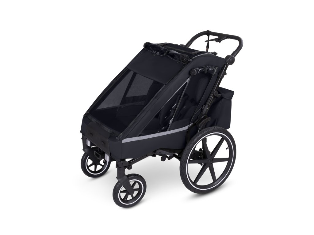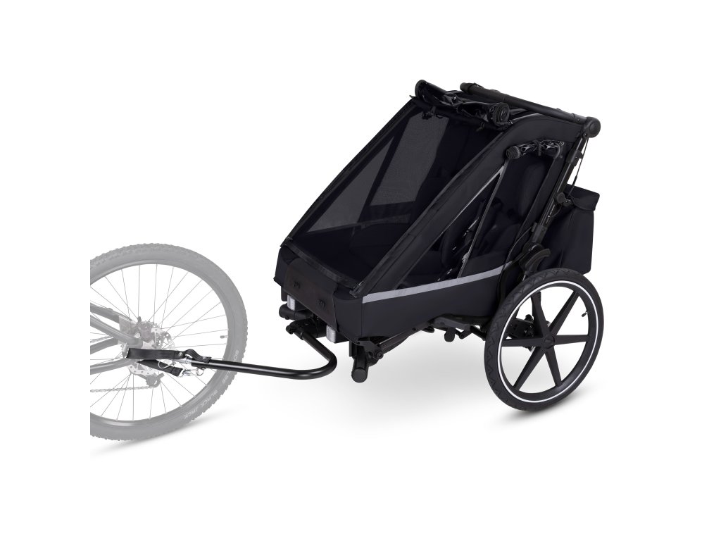 Vysoce kvalitní dětský přívěs za kolo 3v1 pro běh, jogging a cyklistiku až pro 2 děti do celkové hmotnosti 49 kg. Díky jeho multifunkčnosti ho rychle přeměníte z robustního kočárku buď na joggingový kočárek s velkým předním nafukovacím kolem, nebo na pevný přívěs za kolo.