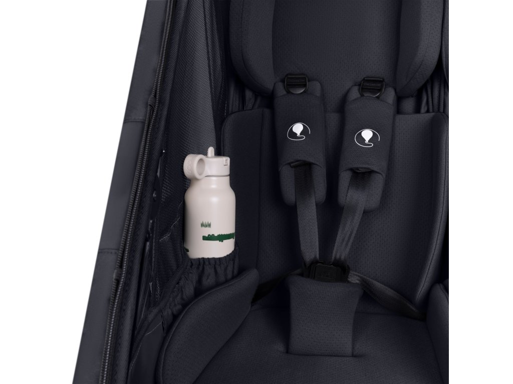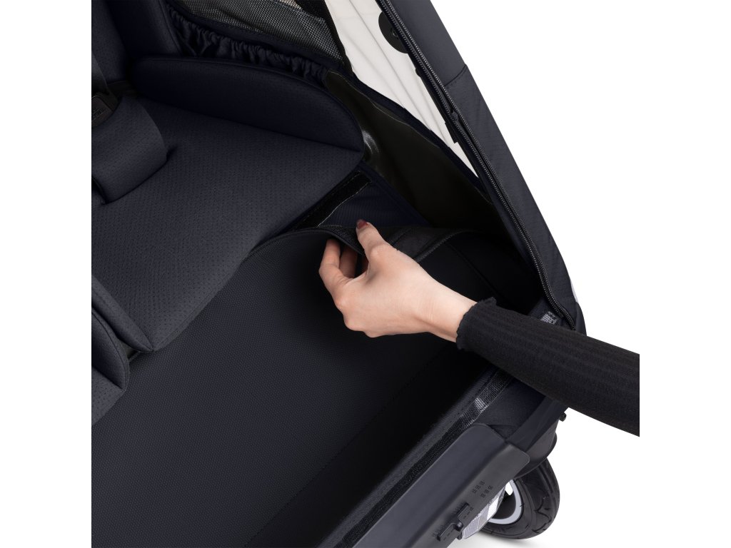 Vozík nabízí také praktické funkce: odnímatelná velká taška, integrovaná stříška 3v1 s moskytiérou, ochranou proti dešti a stříkající vodě a nastavitelná sluneční stříška s ochranným faktorem UPF 50+.