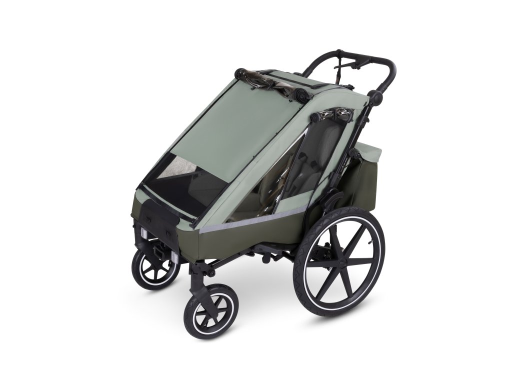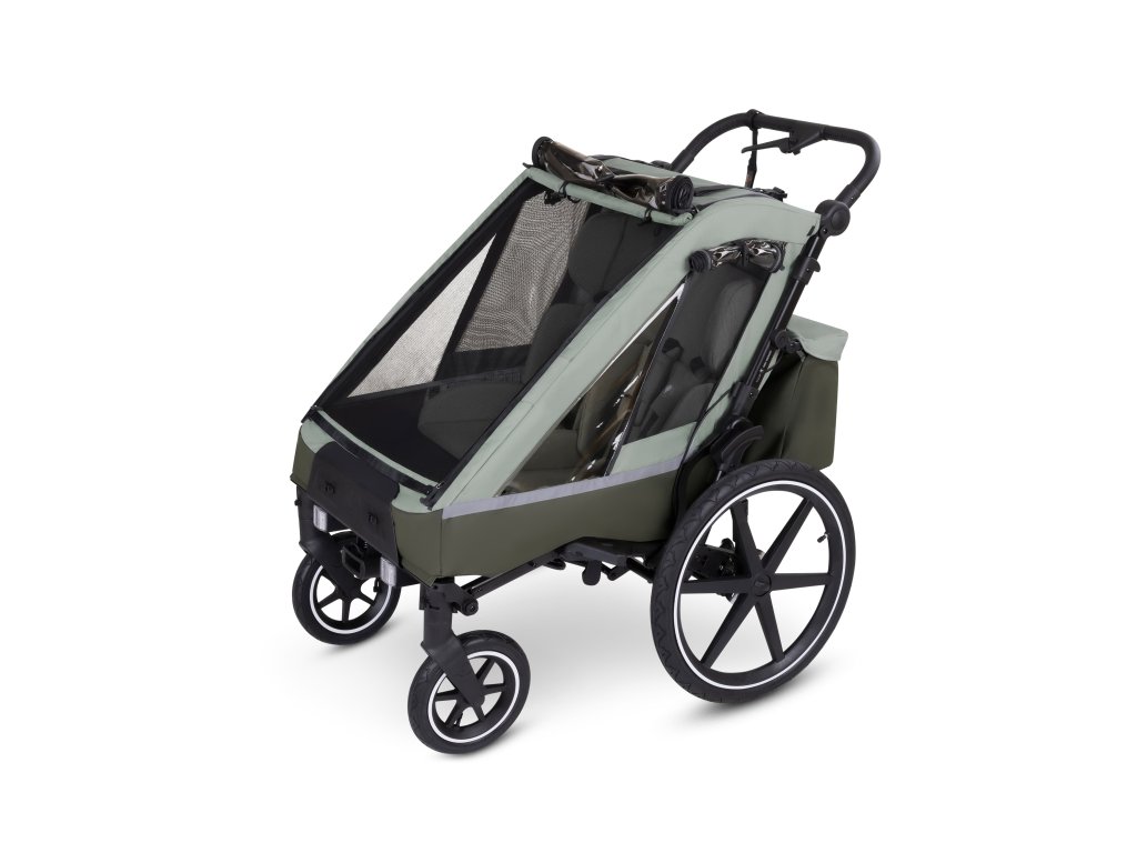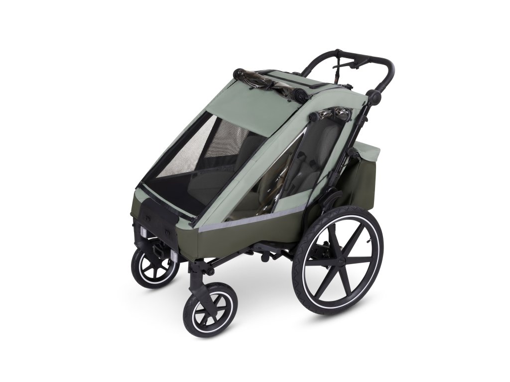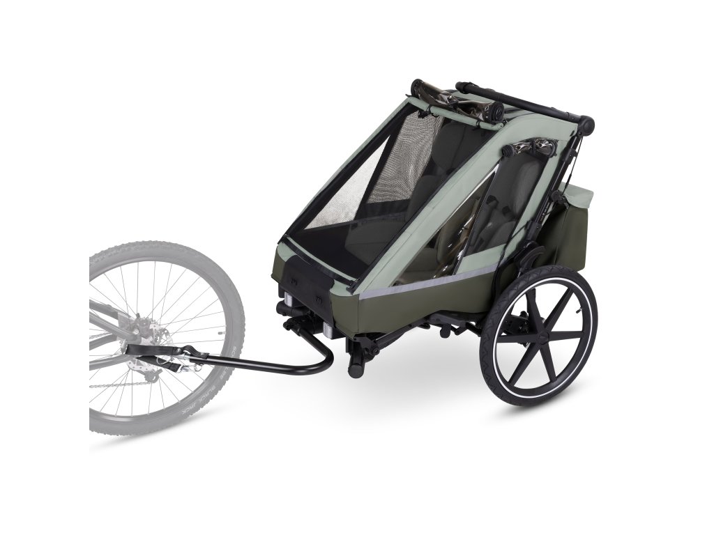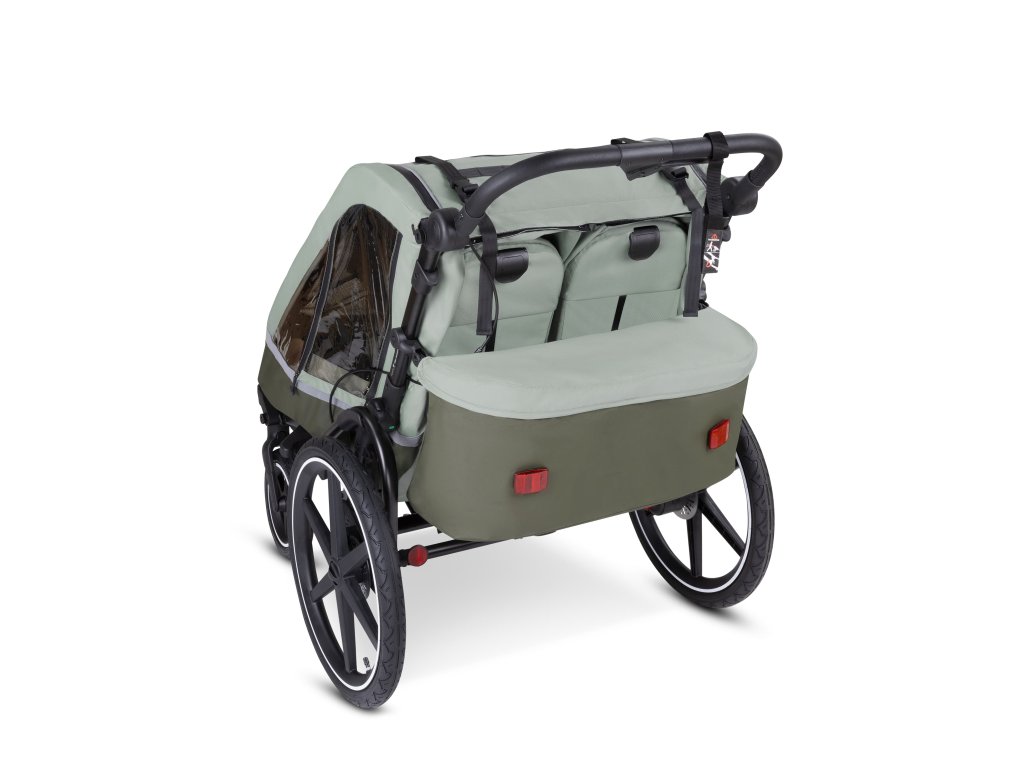 Vysoce kvalitní dětský přívěs za kolo 3v1 pro běh, jogging a cyklistiku až pro 2 děti do celkové hmotnosti 49 kg. Díky jeho multifunkčnosti ho rychle přeměníte z robustního kočárku buď na joggingový kočárek s velkým pneumatickým kolem, nebo na pevný přívěs za kolo.
