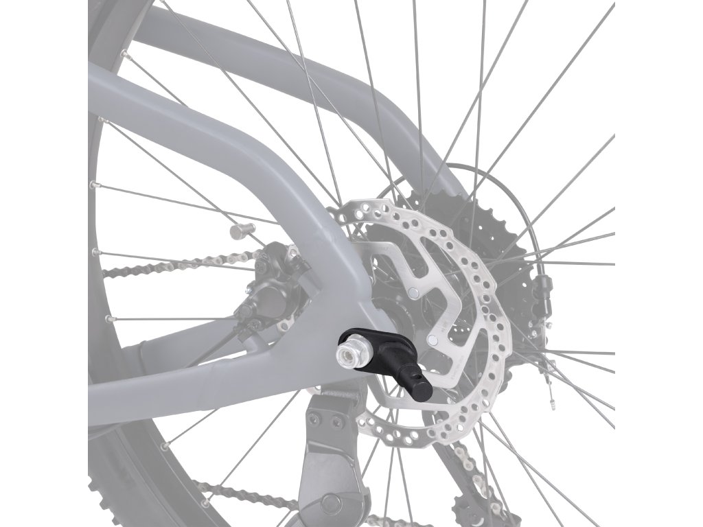 Důležité vědět: Pro jízdní kola existují tři různé systémy náprav. Pevná osa, rychloupínací osa a pevná osa. V závislosti na systému nápravy a tvaru rámu může být zapotřebí další adaptér nebo rozpěrka. To by mělo být zřejmé z návodu k obsluze vašeho kola. Ve většině případů zde také naleznete užitečné informace o montáži přívěsu za kolo k příslušnému modelu.