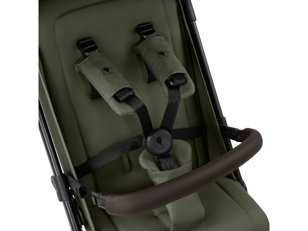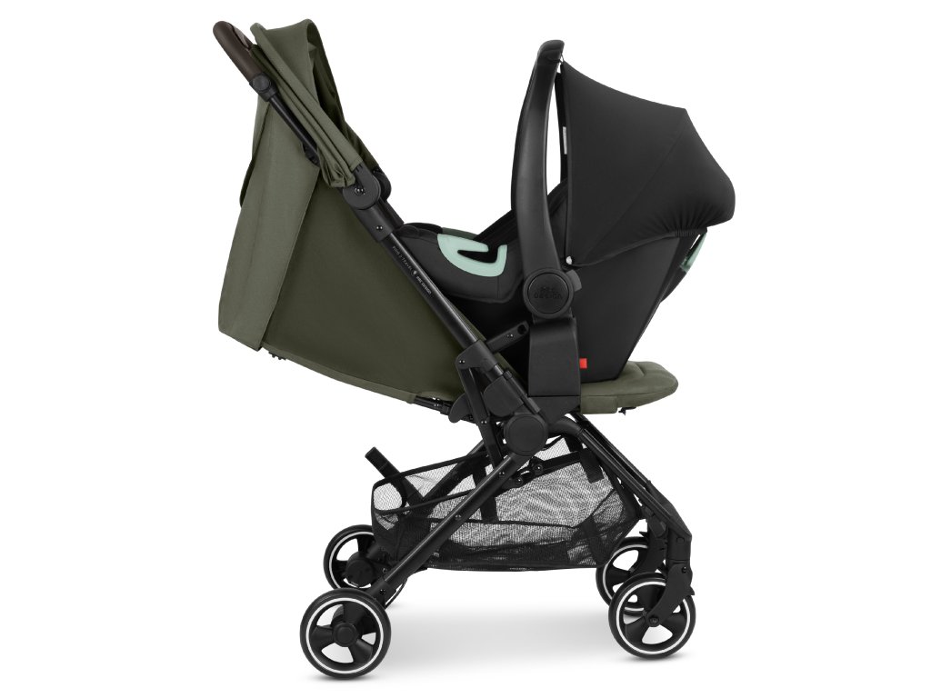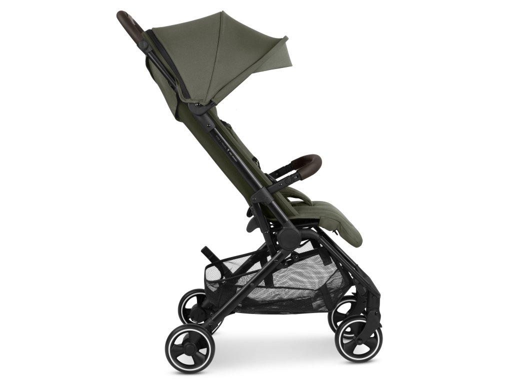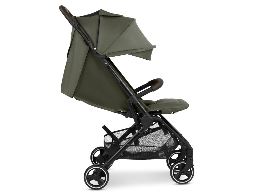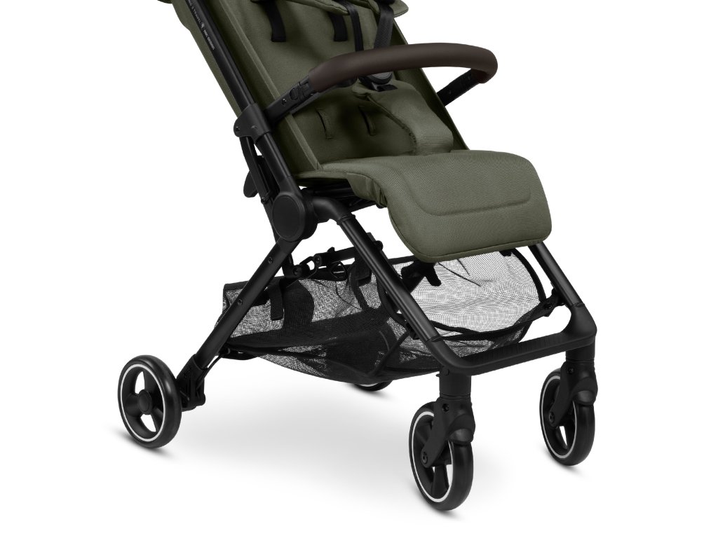 Větší pohodlí pro maminku a tatínka: Parkovací brzda je umístěna přímo na pravém zadním kole. Díky tomu není potřeba zadní náprava. To nejen šetří hmotnost a prostor, ale také zvyšuje pohodlí při tlačení kočárku, díky nově získanému prostoru pro nohy, zejména pro vyšší rodiče.