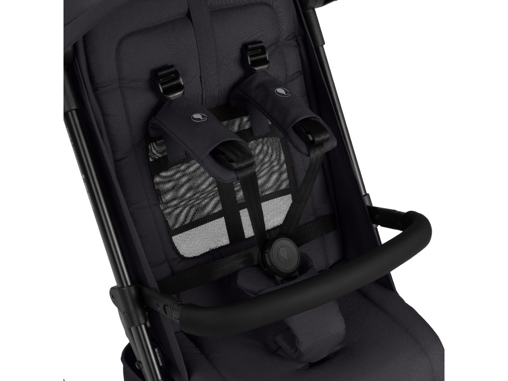 Extra velká a prodloužitelná sluneční stříška s ochranným faktorem UPF 50+ spolehlivě ochrání vaše dítě před slunečními paprsky, zatímco si bude naplno užívat výletů. Vaše dítě je samozřejmě dokonale zabezpečeno. Chytrý pětibodový systém bezpečnostních pásů HappyBelt® lze snadno nastavit díky praktickému magnetickému zapínání a plynulému nastavení pásů zepředu. Měkké polstrované ramenní popruhy mírně vystupují ze zádové opěrky, abyste mohli dítě do kočárku snadno umístit.