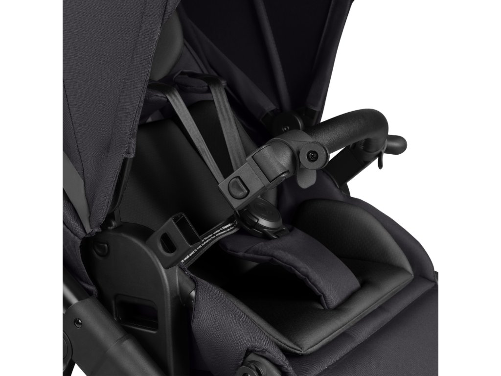 Kočárek je promyšlený i z hlediska manipulace. Ergonomické výškově nastavitelnou rukojeť, můžete snadno nastavit tak, aby vyhovovala vaší výšce. Chytrý pětibodový systém bezpečnostních pásů HappyBelt® se snadno nastavuje díky praktickému magnetickému zapínání a plynulému nastavení pásů, přístupnému zepředu.