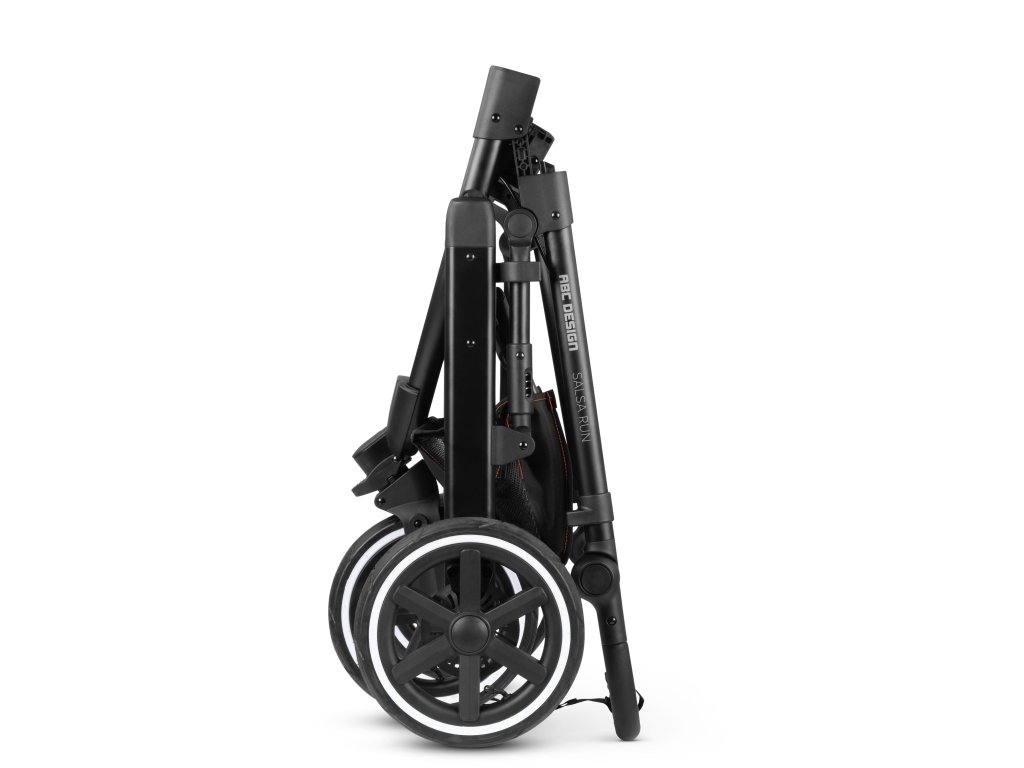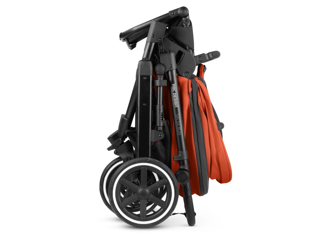 Kočárek Salsa Run je možné složit do praktické kompaktní velikosti i v případě, že je stále připevněné sedadlo (bez ohledu na to, zda je otočeno dozadu nebo dopředu).