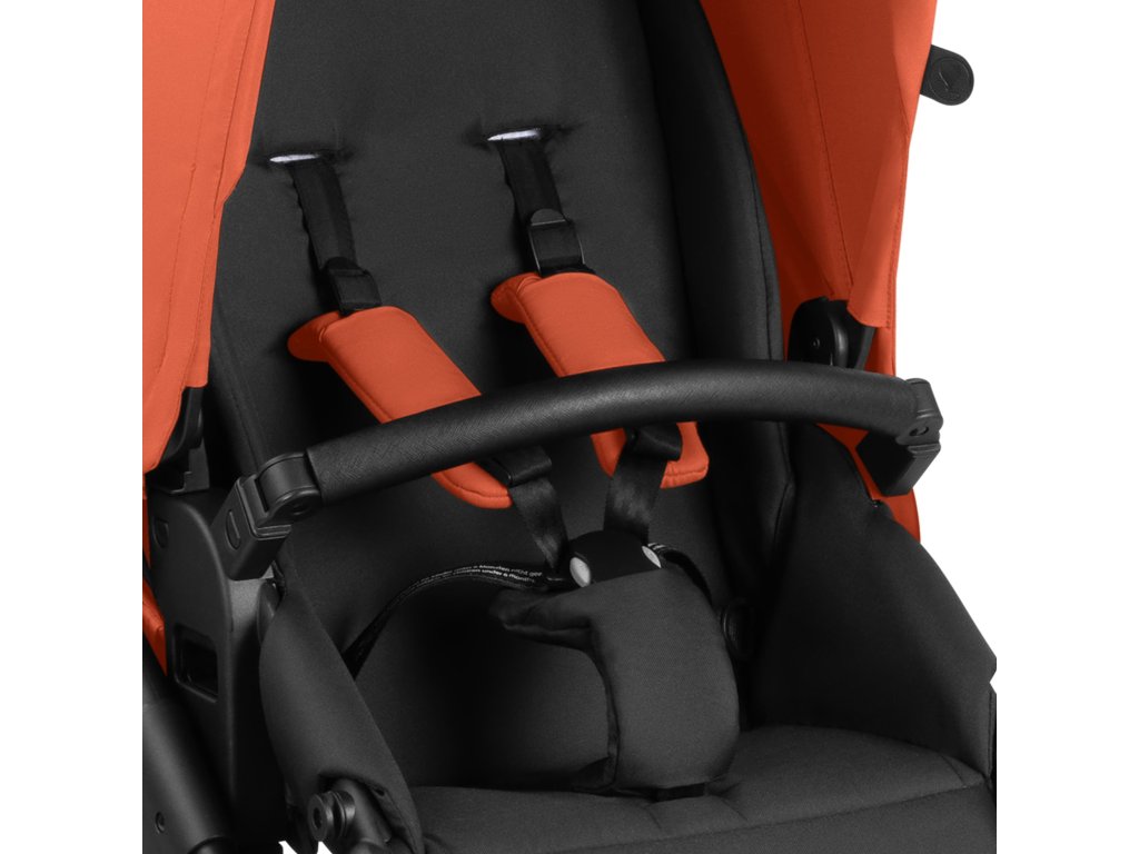 Polstrovnanou otočnou sportovní nástavbu lze nastavit do polohy zcela vleže i vsedě. K dispozici je plynule nastavitelný 5bodový systém pásů s magnetickým zapínáním. Ramenní popruhy jsou polstrovanné a mírně vyčnívají z opěradla, takže připoutání dítěte je snadnější. Ergonomickou rukojeť je možné nastavit podle vašich potřeb.