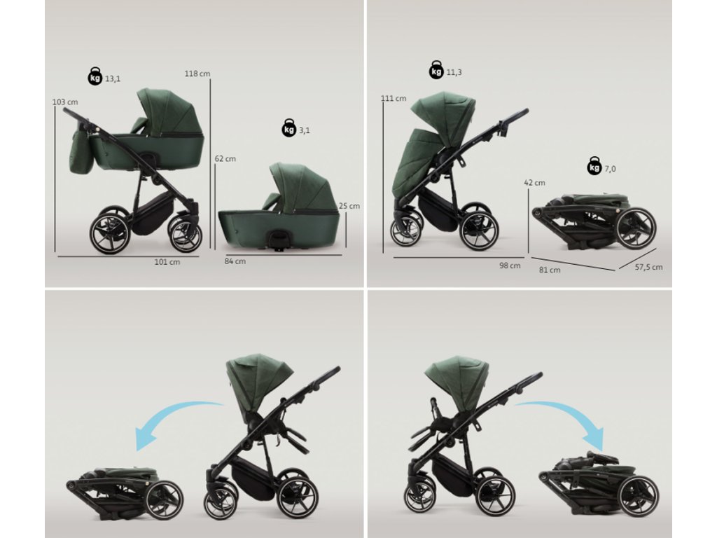 - rozmery zloženého kočíka: 81 x 51 x 42 cm (D x Š x V)