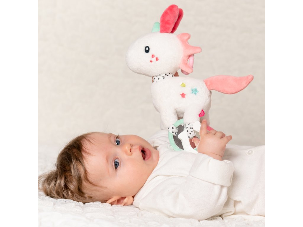 Malé zrkadielko hravo trénuje sebapoznanie dieťaťa, preto bude malý jednorožec určite tým prvým a najlepším priateľom dieťaťa.