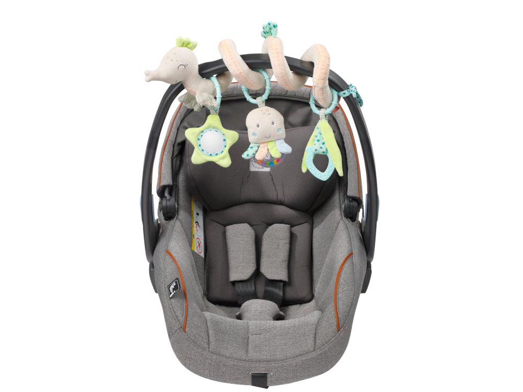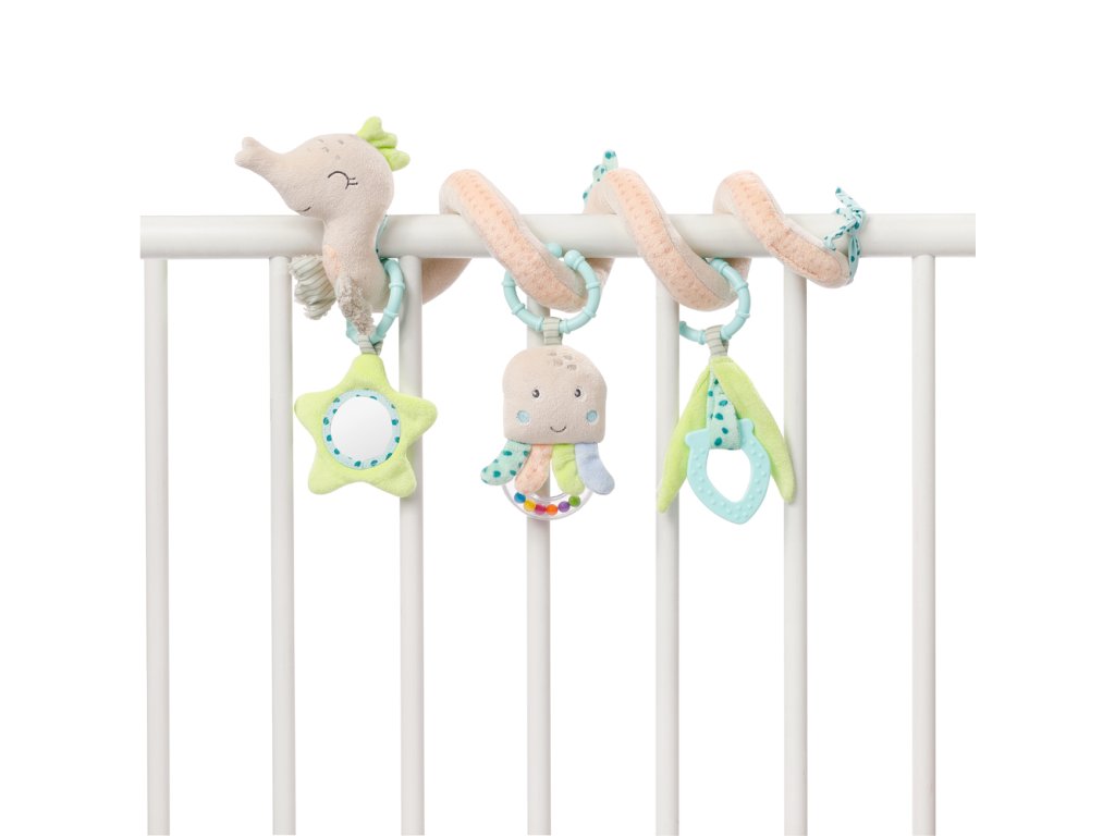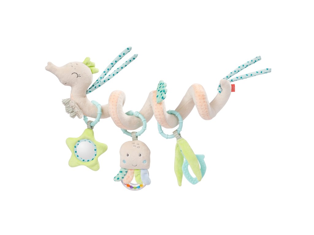 Roztomilý spirálový mořský koník z kolekce Děti moře nabízí rozmanité možnosti hry doma i na cestách. Hračka do kočárku nebo autosedačky ve tvaru zvířátka vybízí svými funkcemi a barvami k pozorování, hraní a uchopení.