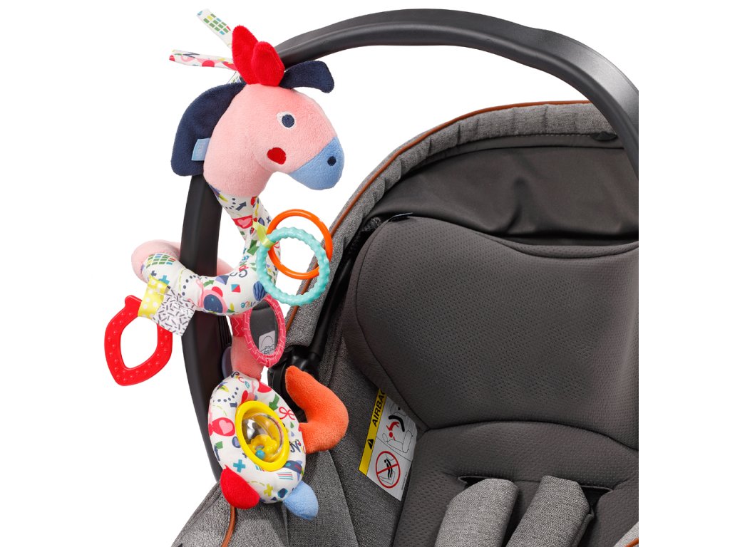vzdelávací hračka rýchlo a pružne pripevnená k sedačke, kočíku, postieľke a