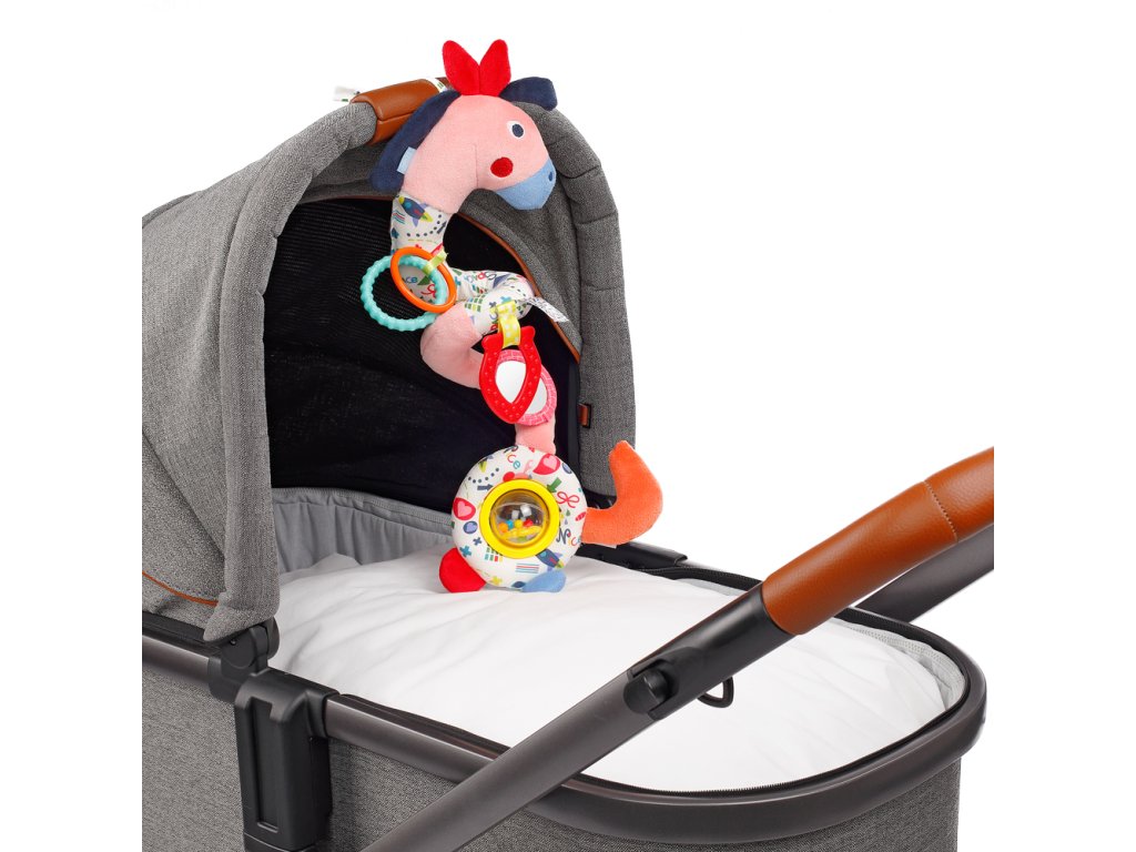 možností hrania doma i na cestách. Hračka do kočíka pozýva dieťa na pozorovanie,