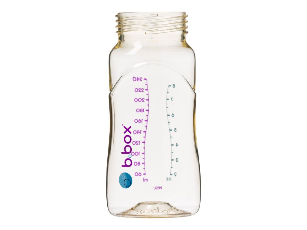 Materiál: lahvička - PPSU; barevný závit a víčko - PP (polypropylen), savička - silikon