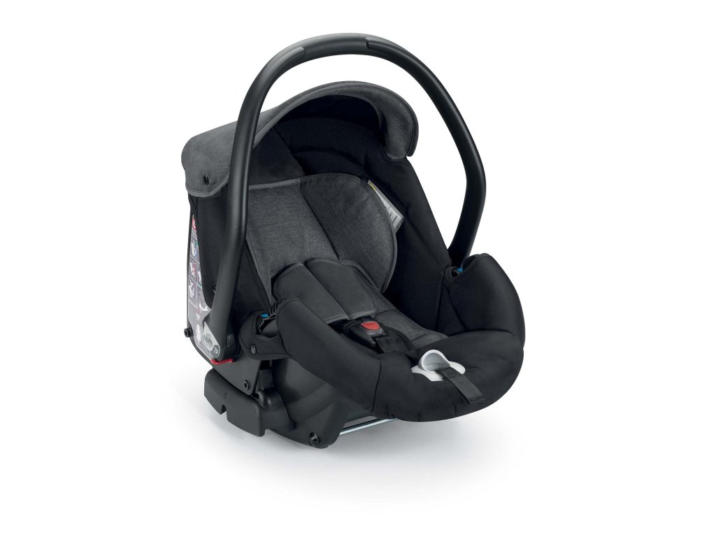 Ochrana hlavy proti bočnému nárazu, viacpolohová a odnímateľná slnečná strieška, anatomická opierka hlavy a polstrovaním pre ochranu nespevnených chrbta dieťaťa, 5-bodový bezpečnostný pás s polstrovaním, praktický mechanizmus pre nastavenie výšky pásov, nastaviteľné vedenie pásu, hojdacia základňa s protišmykovými gumami, na bokoch autosedačky vyobrazené správne používanie.