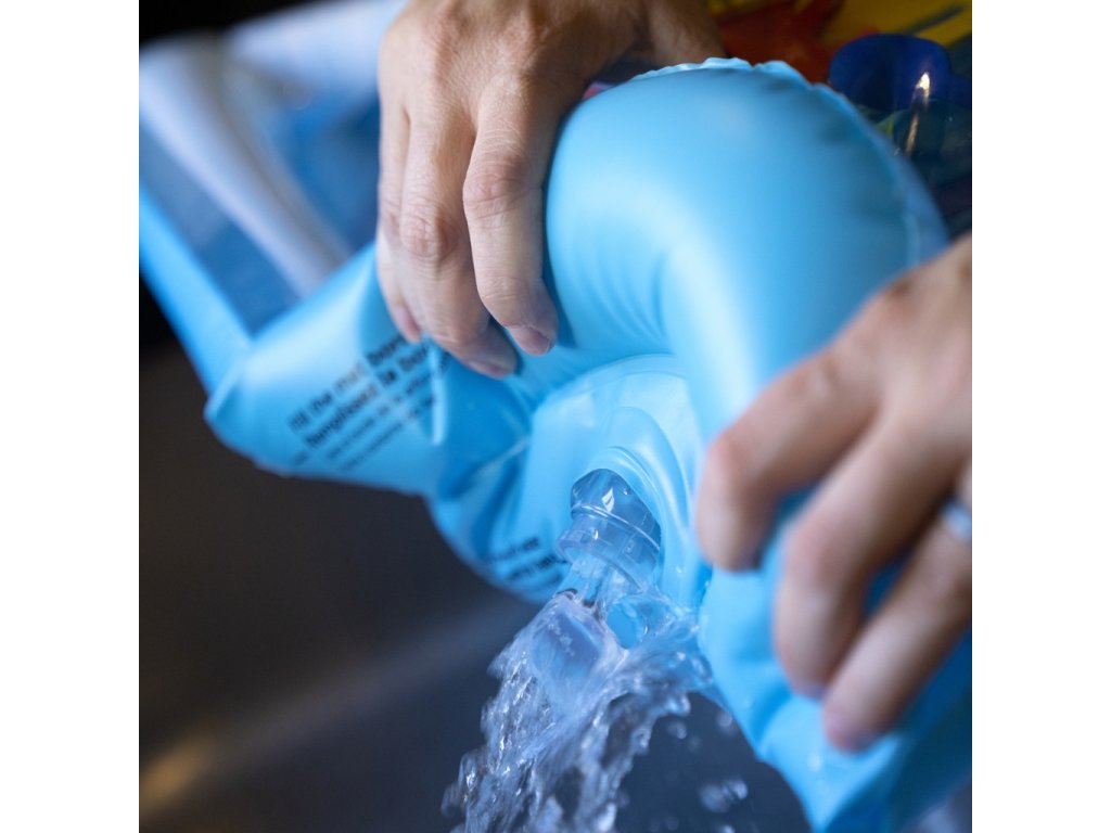 - Vodná zátka umožňuje rýchle a pohodlné plnenie a vypúšťanie podložky.