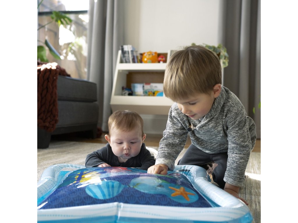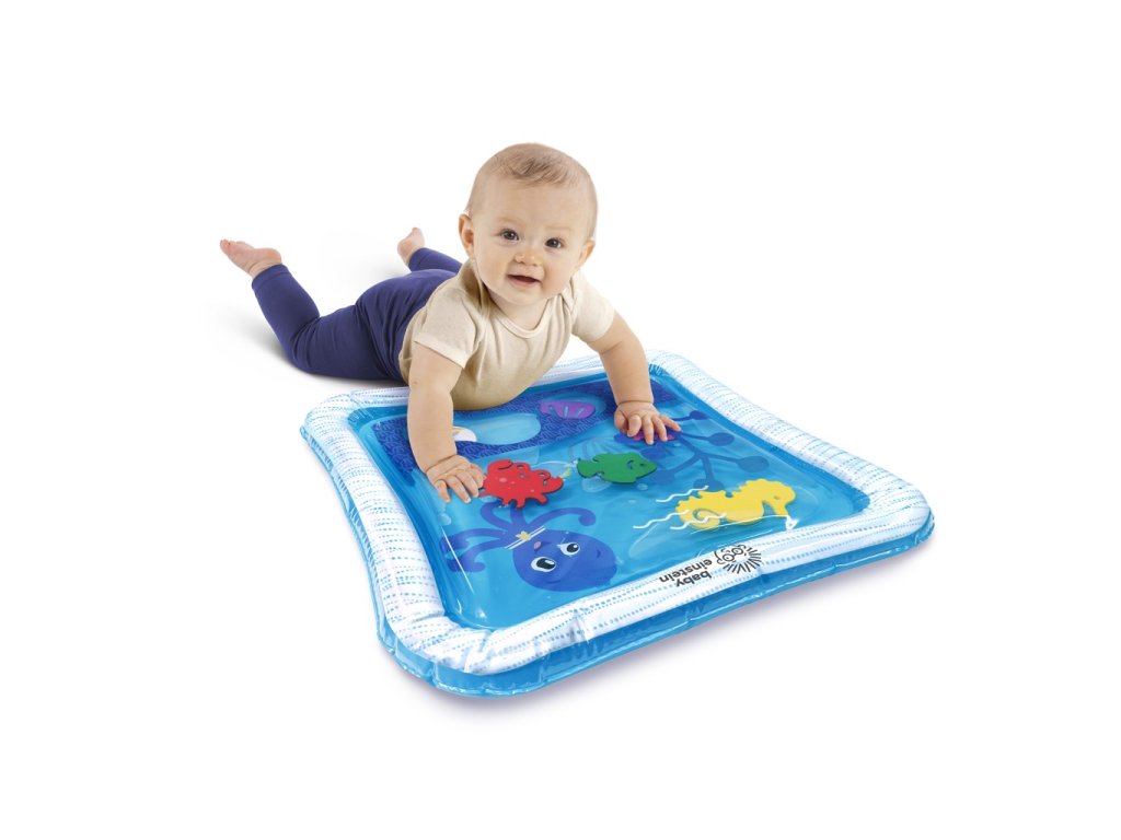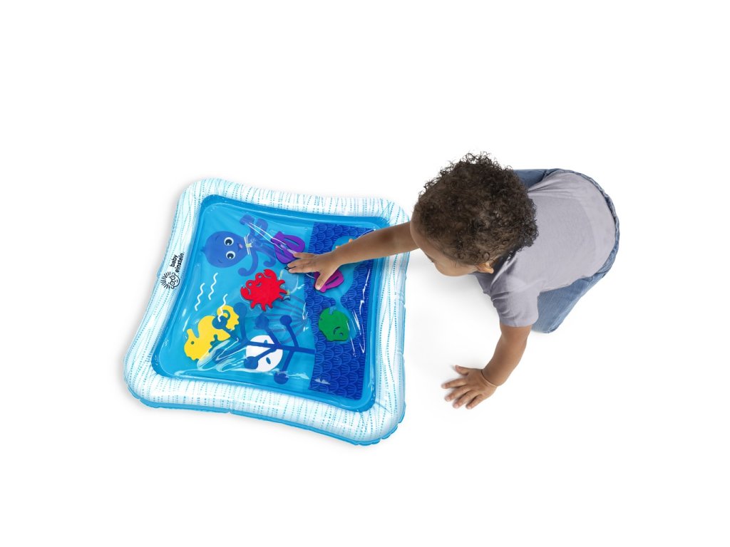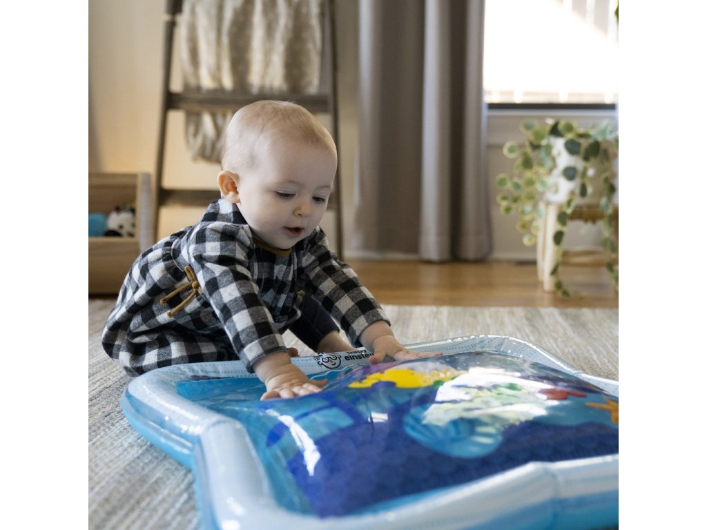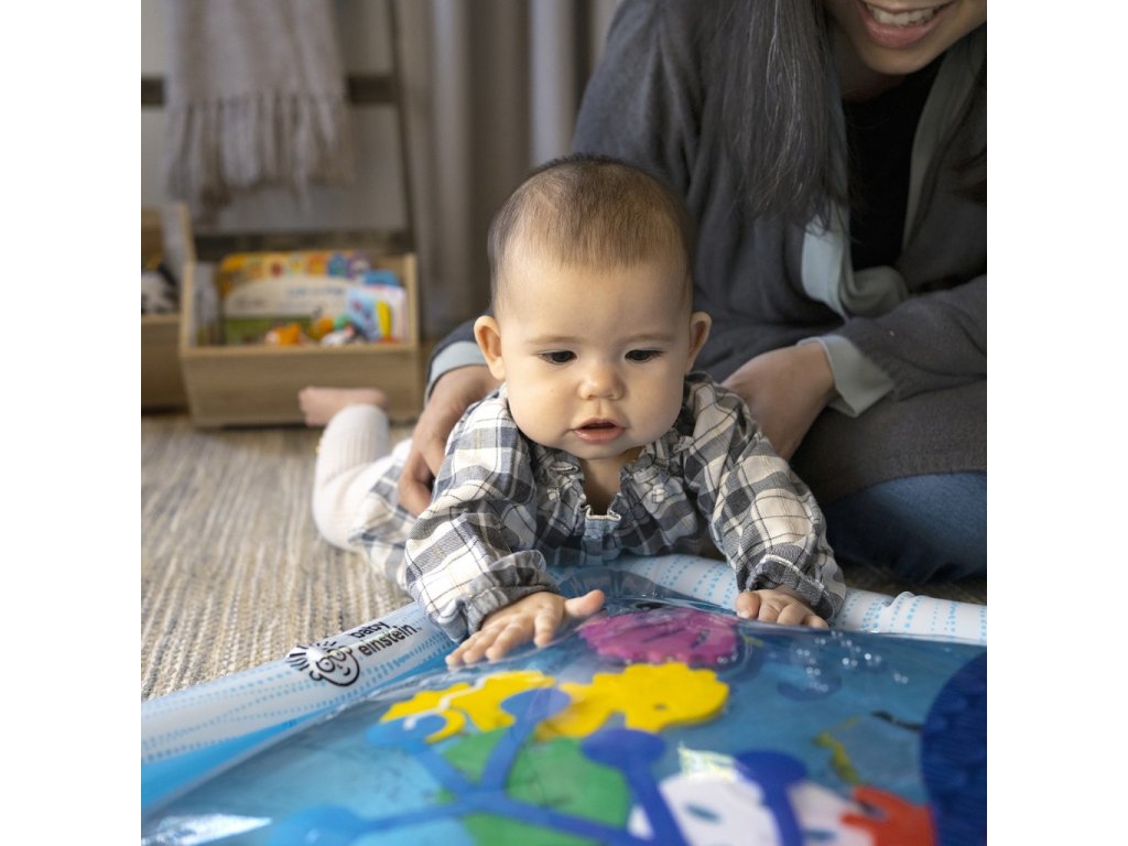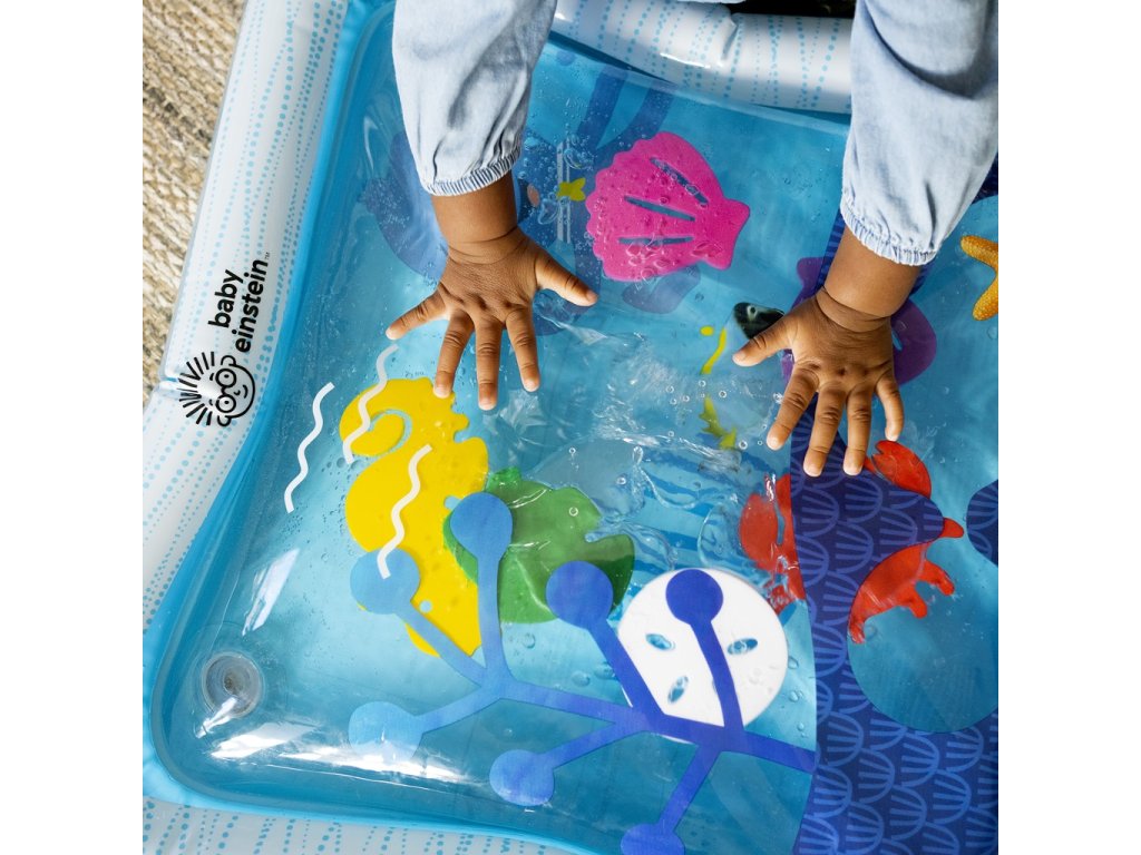 Prieskum podmorského sveta je v rukách vášho dieťatka s vodnou podložkou Opus's Ocean of Discovery™, ktorá obsahuje chobotničku Opus od Baby Einstein. Jednoducho naplňte stred hracej podložky vodou a vonkajší okraj nafúknite vzduchom. Počas hry v sede a na brušku môže bábätko pracovať na rozvoji svalov a zároveň môže vidieť ako sa 6 plávajúcich morských tvorov pohybuje pod hladinou. Táto praktická aktivita, ktorá je ideálna pre prirodzene zvedavé deti vo veku od novorodencov až po staršie deti, pomáha pochopiť princíp príčiny a následku, keď sa dotýkajú podložky a sledujú plávanie podmorských tvorov. Pomáha zaujať a zabaviť dojčatá a batoľatá a zároveň podporuje rozvoj hrubej motoriky. Čistenie je jednoduché — stačí vypustiť vodu a vzduch, utrieť podložku a zložiť ju. Používajte ju doma alebo vezmite so sebou na dobrodružstvá, aby vaše dieťa mohlo objavovať zázraky vody a zmyslové hry, nech ste kdekoľvek.
