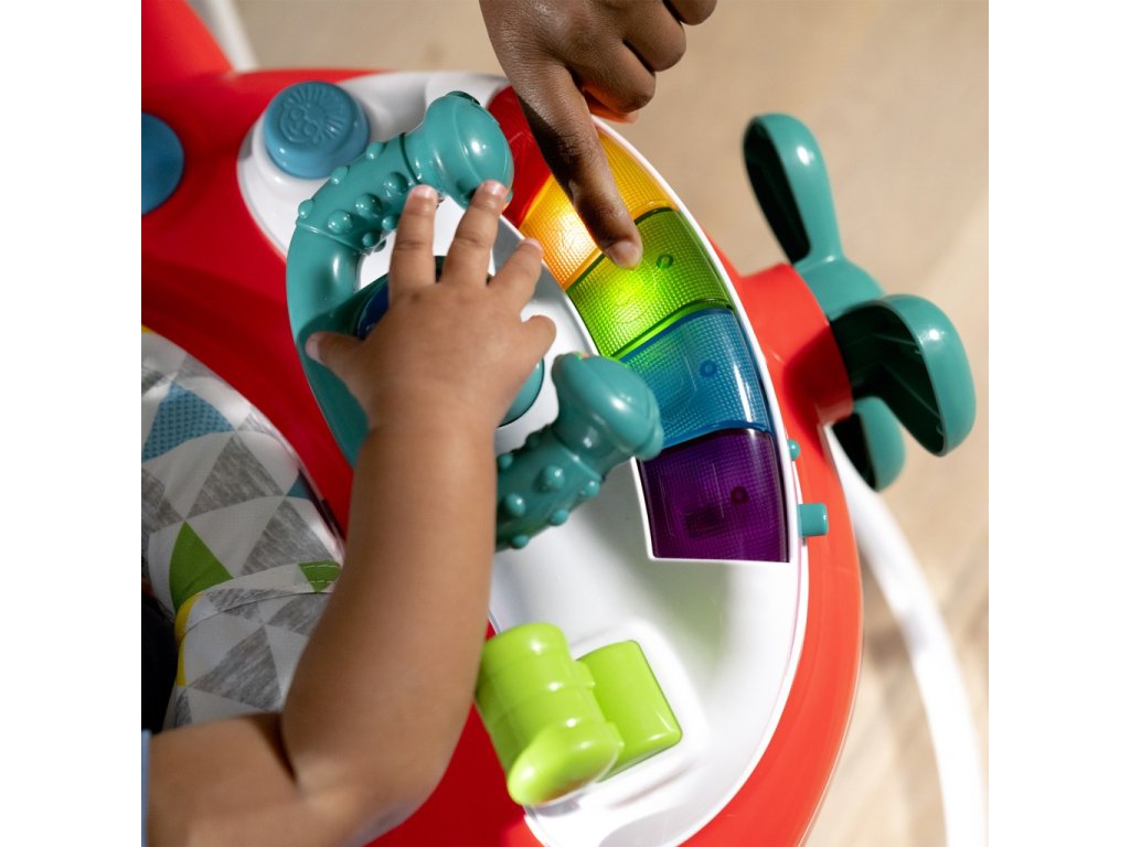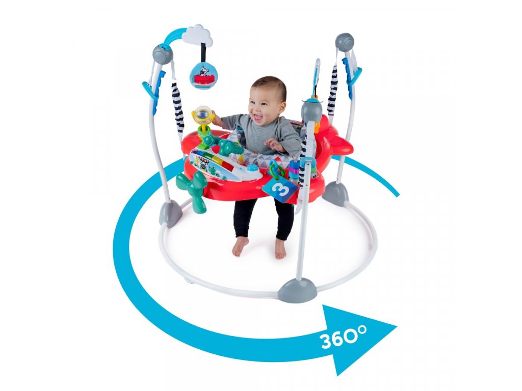 Skákadlo 2v1 umožní dieťatku pilotovať lietadlo a prežiť viaczmyslové dobrodružstvo s viac ako 20 melódiami, zvukmi, svetlami a nastaviteľným sedadlom so 4 výškovými polohami, ktoré sa otáča o 360 stupňov, a ďalšími funkciami.