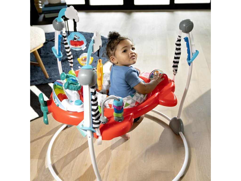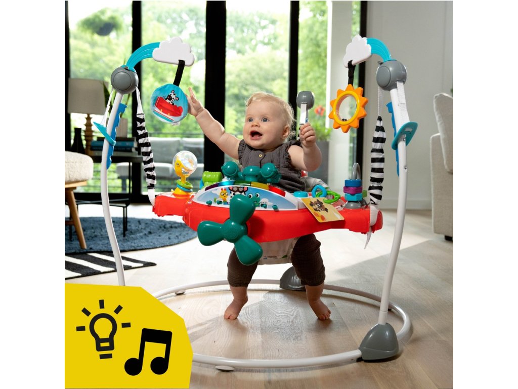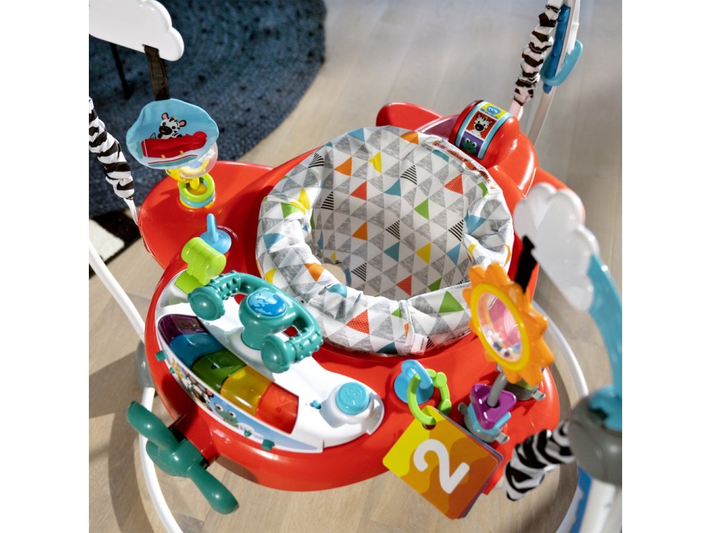 - skákadlo Baby Einstein Ocean Explorers Airplane Adventure s motívom lietadla, odmeňuje skoky dieťaťa hudbou a svetlom a rozvíja tak jeho hrubú motoriku