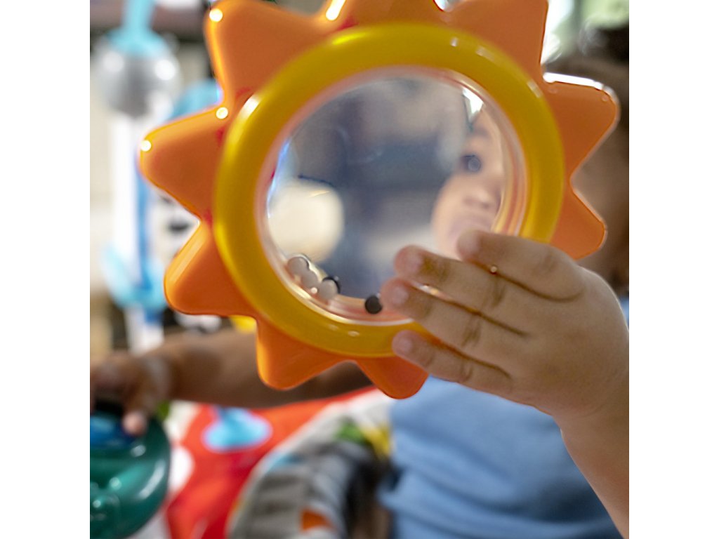 - hudba je všade okolo vďaka 360° otočnému sedadlu, kde sa dieťatko môže otáčať a odrážať sa