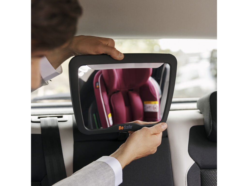 Zadné zrkadlá sú vo vozidle nesmierne dôležité zvlášť, keď máte detskú autosedačku nainštalovanú v proti smere jazdy. Zrkadlo Baby Mirror XL s led osvetlením umožňuje šoférovi kontrolovať svoje dieťatko, i keď cestuje za tmy. Svetlá sa ovládajú oddelene pomocou diaľkového ovládača, tak že si ich zapnete len vo chvíli, keď ich potrebujete. Plocha zrkadla je omnoho väčšia, než u klasických zrkadiel, vďaka tomu máte výraznejší prehľad diania na zadnom sedadle. Zrkadlo sa uchycuje na stredovú opierku hlavy nastaviteľnými pásmi. Konštrukcia zrkadla je vybavená kĺbovým mechanizmom, vďaka tomu je prispôsobiteľnejšia priestoru a uľahčuje nastavenie zrkadla a jeho vyššiu variabilitu. Baby Mirror XL s osvetlením absolvovalo crash test.