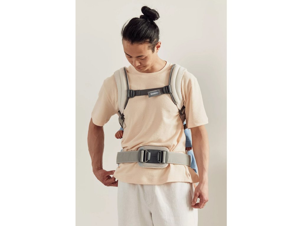 Čiastočne to slúži na zabezpečenie optimálneho pohodlia pre vaše rastúce dieťa a čiastočne na to, aby ste mohli čo najpohodlnejšie nosiť. K dispozícii je jedna výšková poloha pre novorodencov a jedna pre staršie deti. Keď nosíte staršie dieťa, presuňte si opasok na boky, aby bolo vaše dieťa v správnej výške a aby sa váha lepšie rozložila.