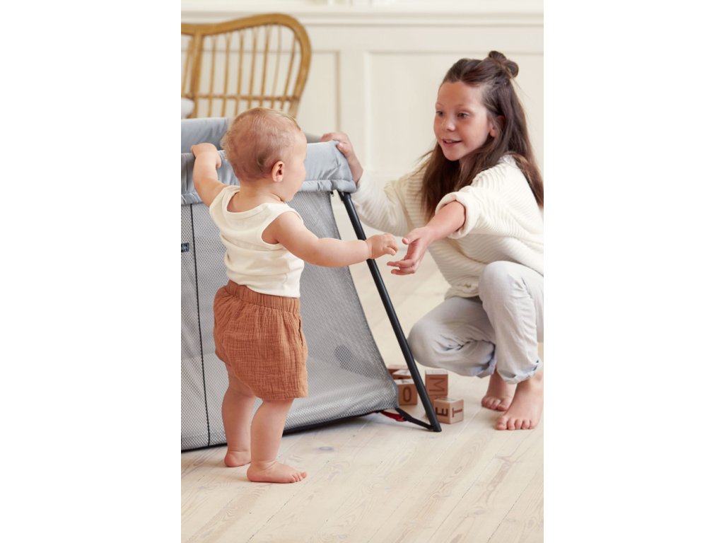 BabyBjörn postieľka je ľahká, praktická a pohodlná, čo z nej robí perfektnú postieľku na cesty. Ešte nikdy nebolo spanie s dieťaťom mimo domova jednoduchšie. Postieľka váži iba 5 kg, a zložená je jediným pohybom. Súčasťou je vak, ktorý je rovnako praktický ako normálna taška a určite ho využijete pri prenášaní postieľky.