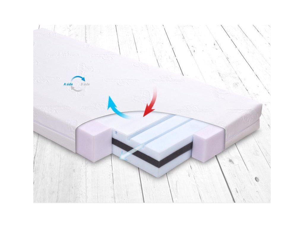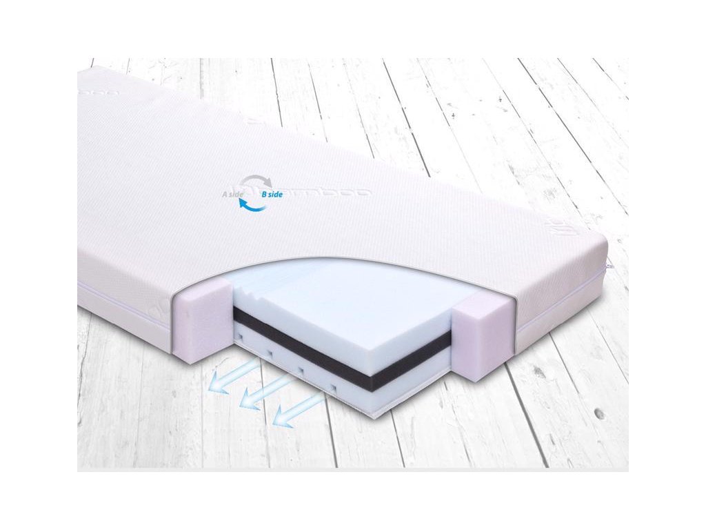 - Strana B: Sedem zón tvrdosti pre optimálne rozloženie hmotnosti na povrchu matraca.
