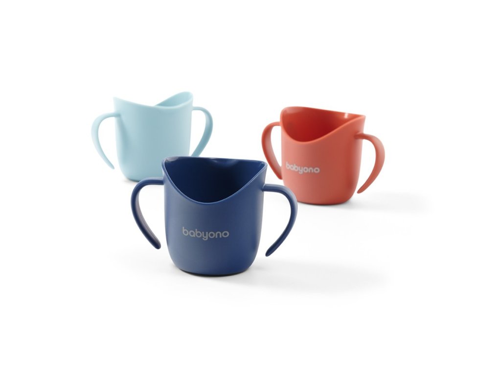 BABYONO Hrnček ergonomický s uškami 120 ml bledomodrý 6m+