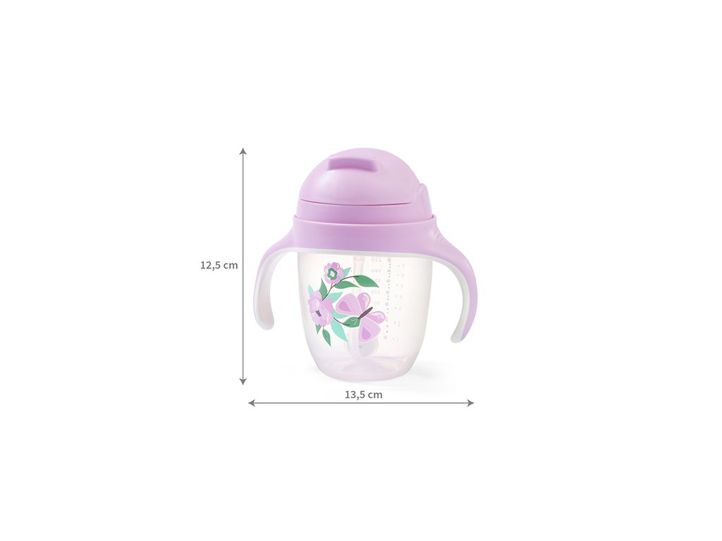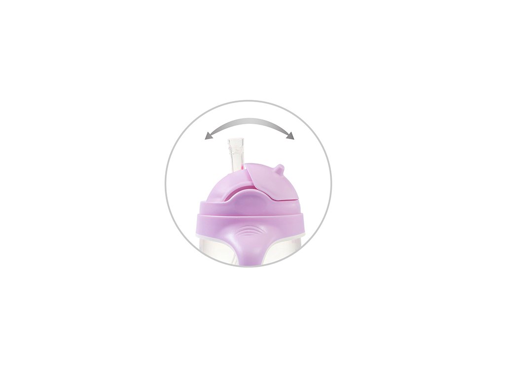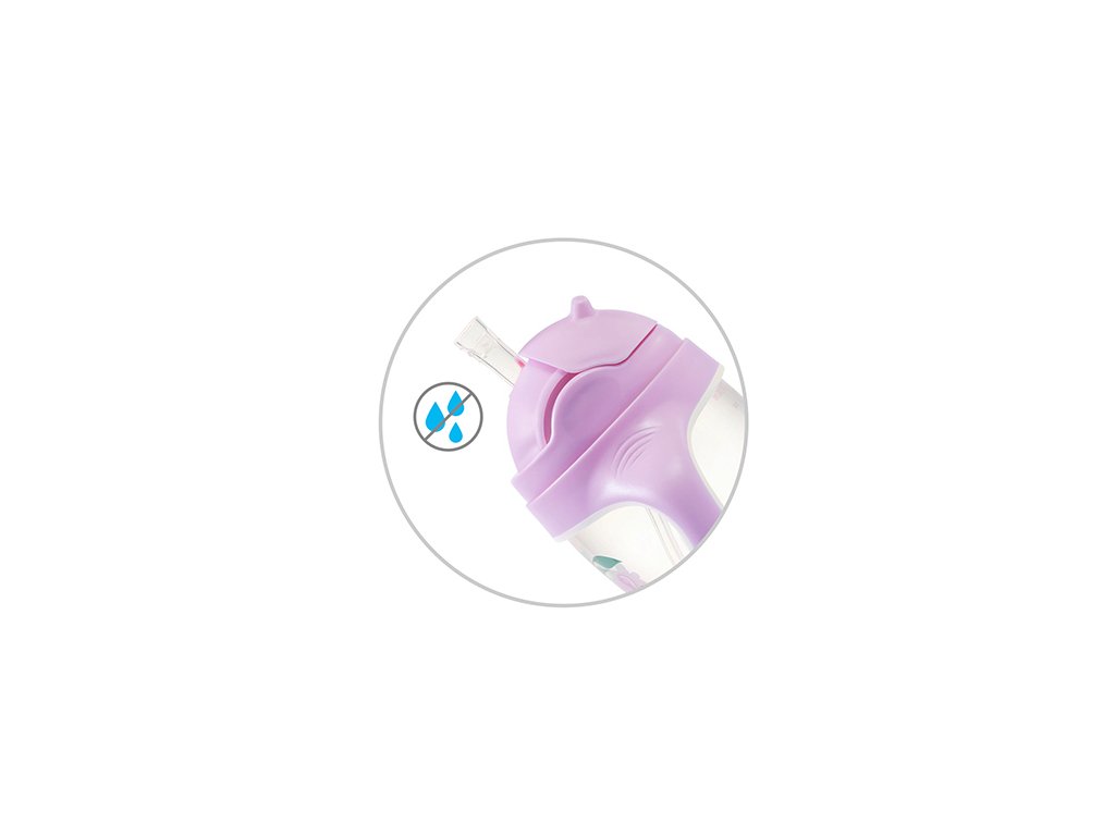 Pohár je vhodný na učenie sa piť samostatne. Slamka sa pohybuje spolu s tekutinou vo vnútri fľaše, vďaka čomu môže vaše dieťa piť v akomkoľvek uhle, dokonca aj v poloľahu, alebo keď je pohár otočený hore dnom.