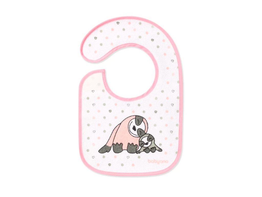 Podbradník s krásnym motívom je vyrobený z vysoko kvalitnej froté bavlny. Vnútorná vrstva je z nepremokavého materiálu, ktorý dodatočne chráni oblečenie dieťatka pred znečistením. Pohodlné a praktické zapínanie na suchý zips zvyšuje pocit pohodlia pre dieťatko.