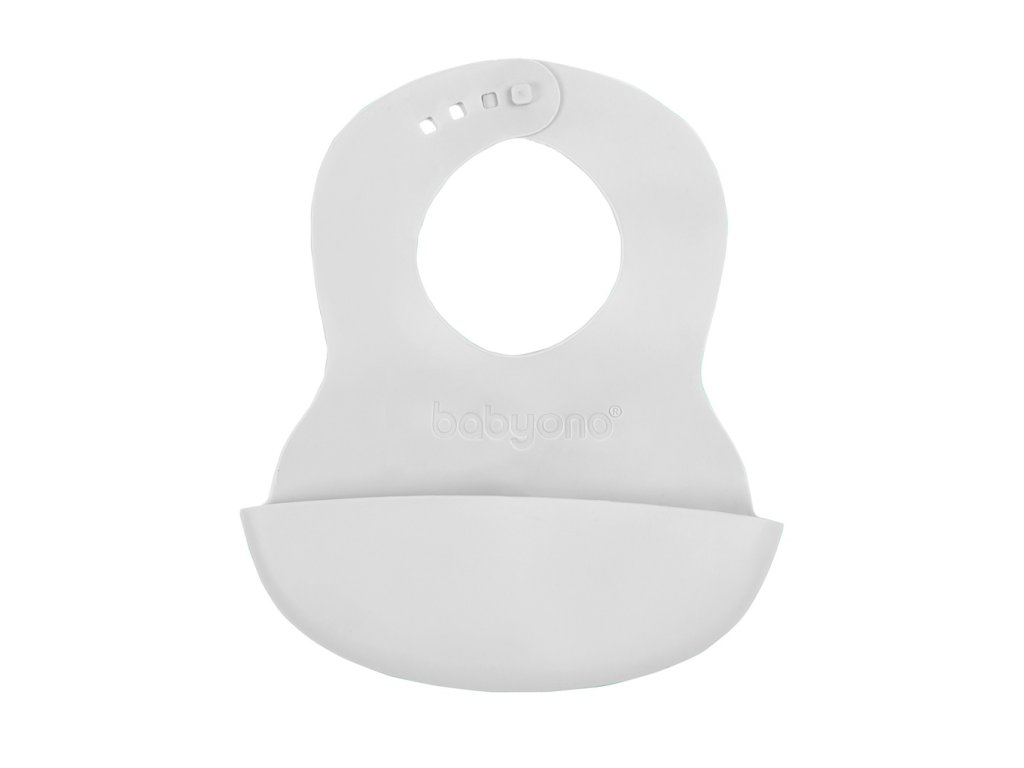 BABYONO Podbradník mäkký plastový s vreckom bez BPA grey 6m+