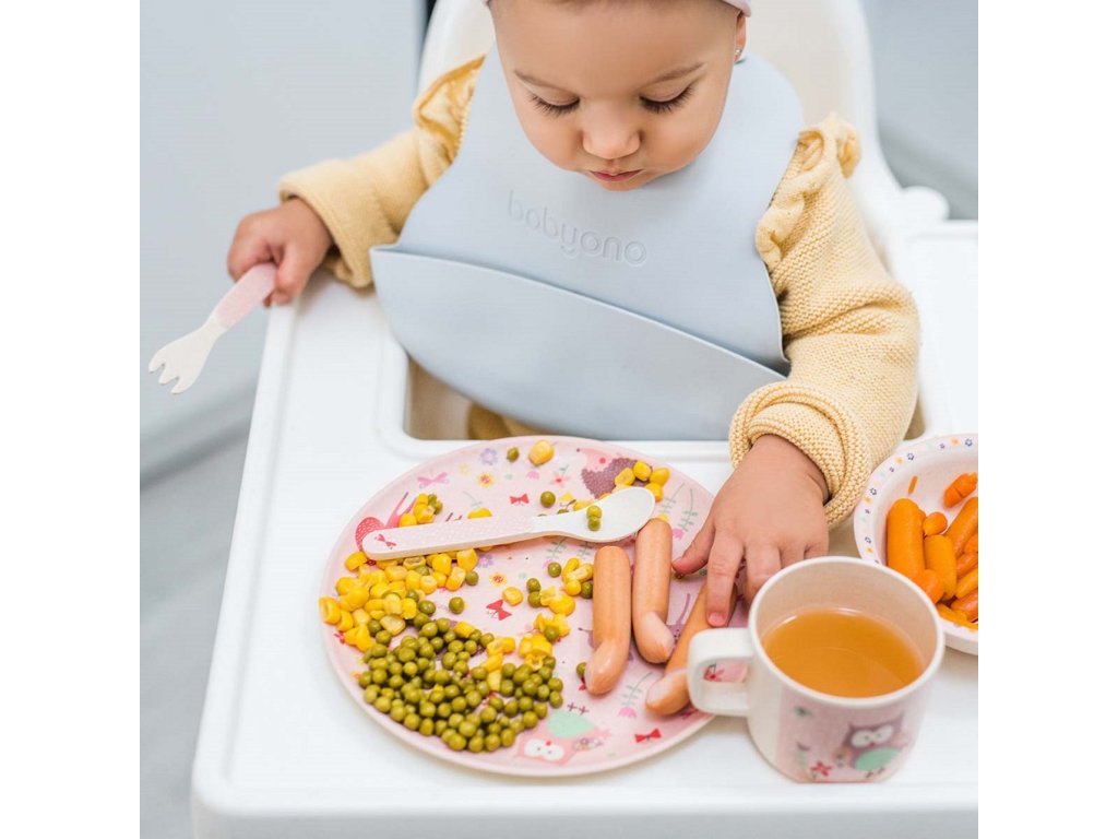 Mäkký podbradník účinne chráni oblečenie vášho dieťaťa pred znečistením počas jedenia. Podbradník je vybavený nastaviteľným uzáverom a špeciálnym vreckom. Je vyrobený z ľahkého a pohodlného materiálu. Ľahko sa čistí a dá sa umývať v umývačke riadu.