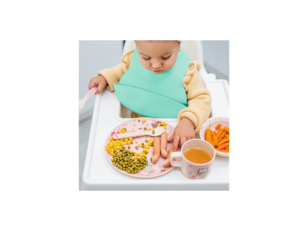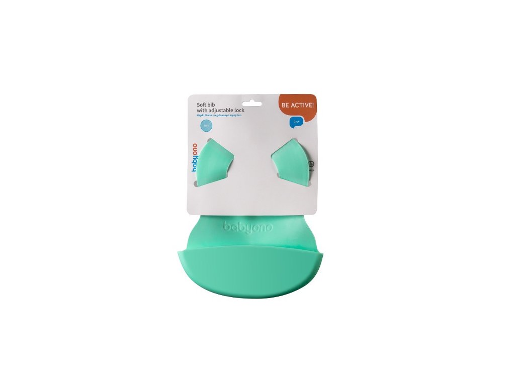 BABYONO Podbradník mäkký plastový s vreckom bez BPA mint 6m+