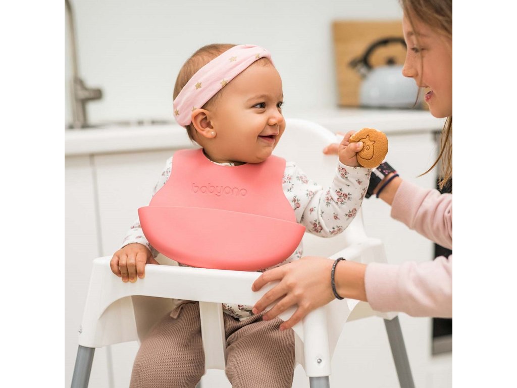 Mäkký podbradník účinne chráni oblečenie vášho dieťaťa pred znečistením počas jedenia. Podbradník je vybavený nastaviteľným uzáverom a špeciálnym vreckom. Je vyrobený z ľahkého a pohodlného materiálu. Ľahko sa čistí a dá sa umývať v umývačke riadu.