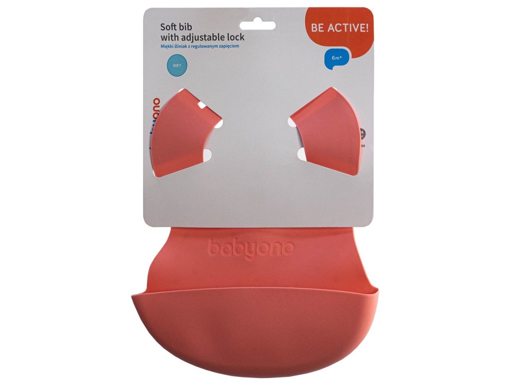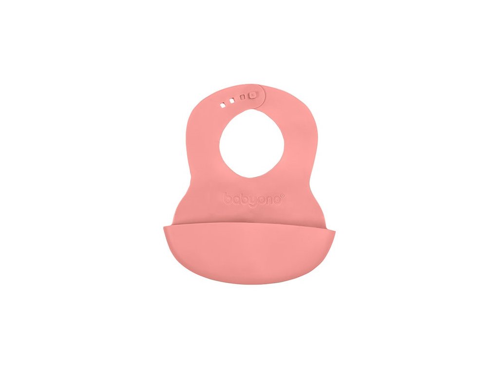 BABYONO Podbradník mäkký plastový s vreckom bez BPA pink 6m+