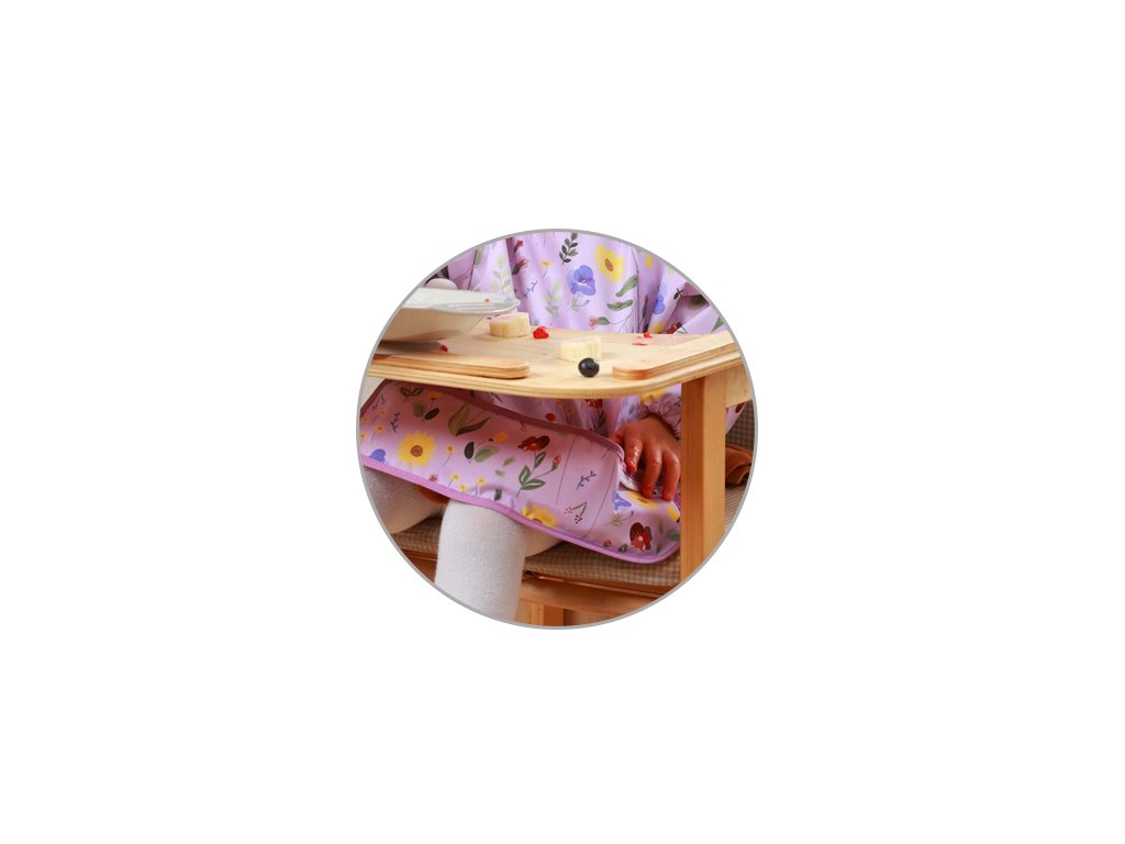 Vďaka pružným gumičkám na rukávoch zástera ešte lepšie chráni detské oblečenie pred nečistotami. Ľahko sa prispôsobí malým ručičkám bábätka.