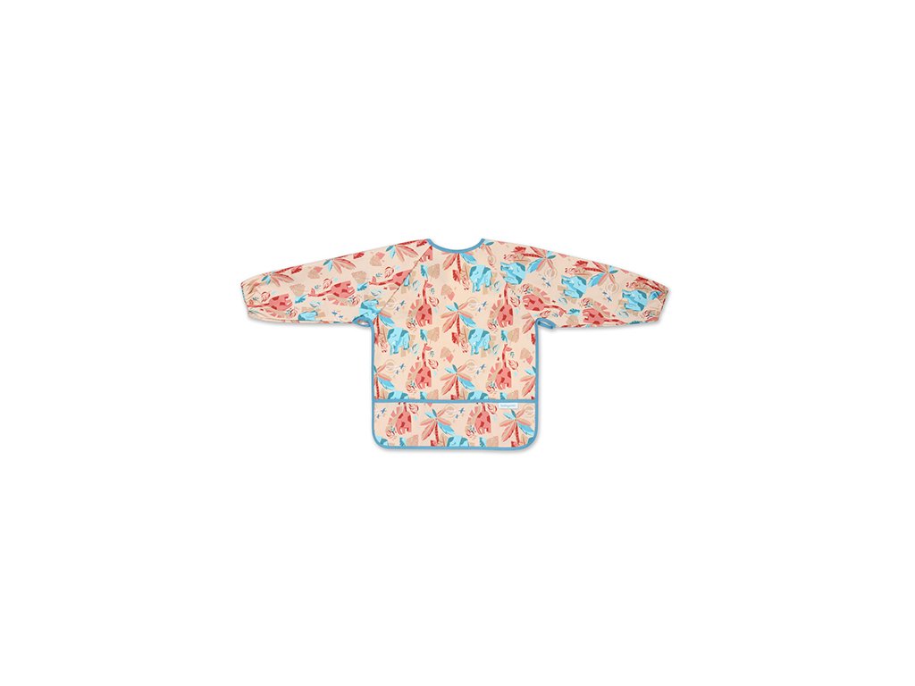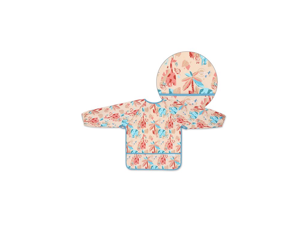 Podbradník s dlhým rukávom je šikovný pomocník, ktorý ochráni oblečenie Vášho bábätka. Počas jedenia zaisťuje prednú časť oblečenia aj rukávy, ktoré sa zvyknú zašpiniť. Vďaka pružným gumičkám dobre priľne k malým ručičkám bábätka. Podbradník s rukávmi má aj praktické vrecko na omrvinky, ktoré zachytáva zvyšky jedla. Zástera s rukávmi je vodeodolná a ľahko sa čistí, takže sa osvedčí, keď sa dieťatko učí jesť samo. Zapínanie podbradníka môžete ľubovoľne prispôsobiť veľkosti krku bábätka.
