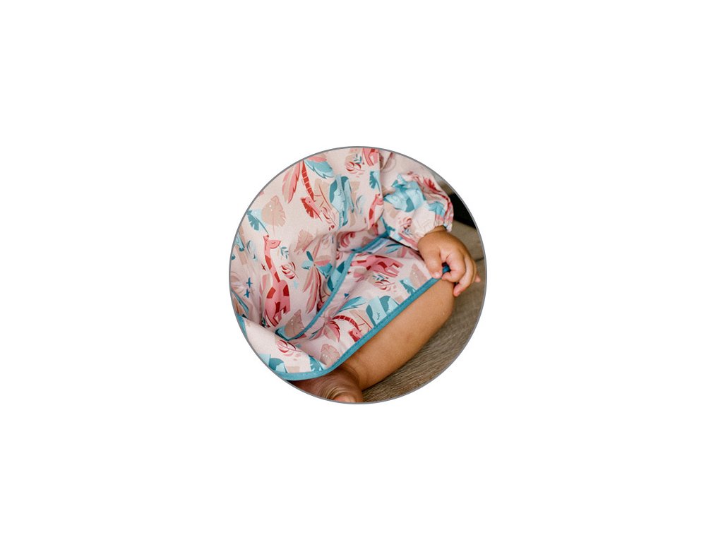 Vďaka pružným gumičkám na rukávoch zástera ešte lepšie chráni detské oblečenie pred nečistotami. Ľahko sa prispôsobí malým ručičkám bábätka.