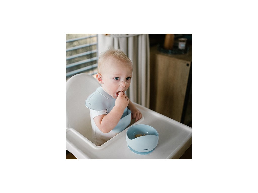 Silikónový podbradník sa dokonale prispôsobí tvaru dieťaťa, čím mu poskytuje pohodlie. Vďaka zaobleným okrajom podbradník chráni väčšiu časť oblečenia dieťaťa pred znečistením. Ideálny na objavovanie nových chutí bez obáv z nečistôt.