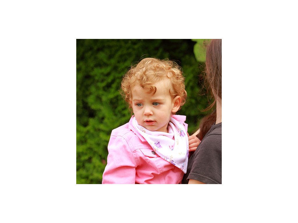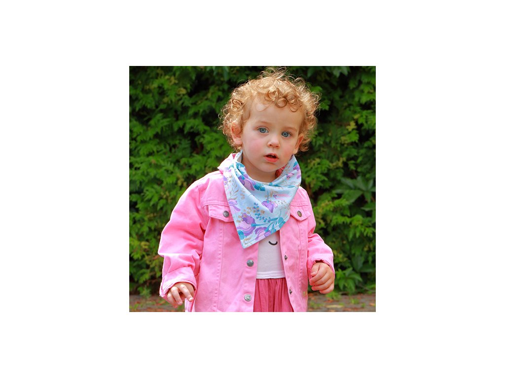 Slintáčik je vyrobený z dvojvrstvovej 100% bavlny, takže jemne obopína krk dieťatka. Šatka je obojstranná. Ľahko ju prispôsobíte štýlu oblečenia Vášho bábätka.