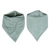 Tento zelený módny slintáčik-bandana z bavlneného froté, môže vaše dieťa nosiť po celý deň. Super užitočné, keď potrebujete ochrániť oblečenie pri kŕmení alebo ak dieťa pri raste zubov viac sliní. Slintáčik má certifikáciu Öko-Tex a môže byť veľmi originálnym darčekom k narodeniu bábätka.